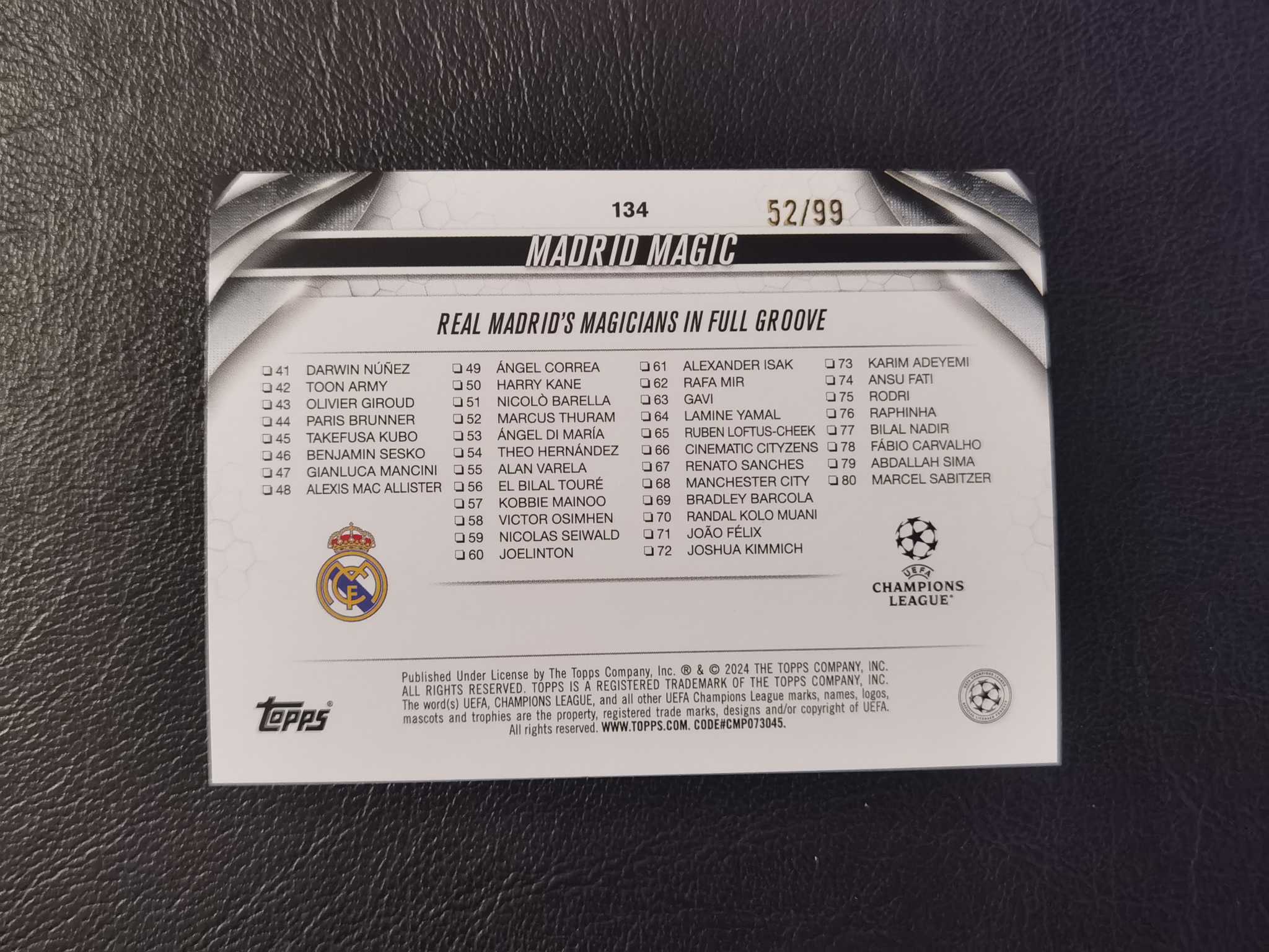 2024 Topps UCC Vinicius Junior 维尼修斯 卡马文加 99编 双人庆祝 银折 皇马 碧玉 带编 折射【ycy 躺平】