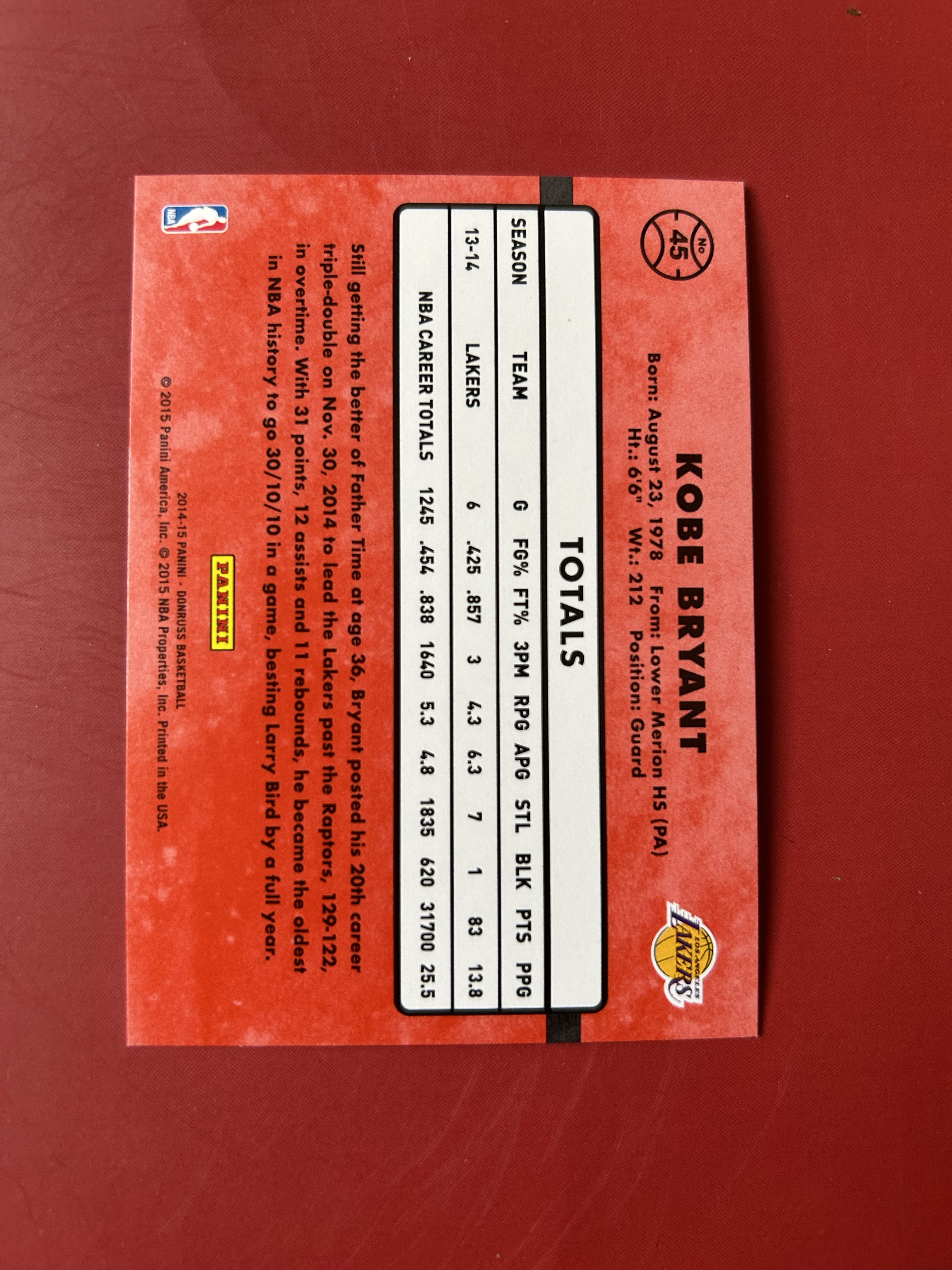 2014-15 Panini Donruss Kobe Bryant 科比 布莱恩特 小飞侠 折射 银折 带编 255编 收藏必备