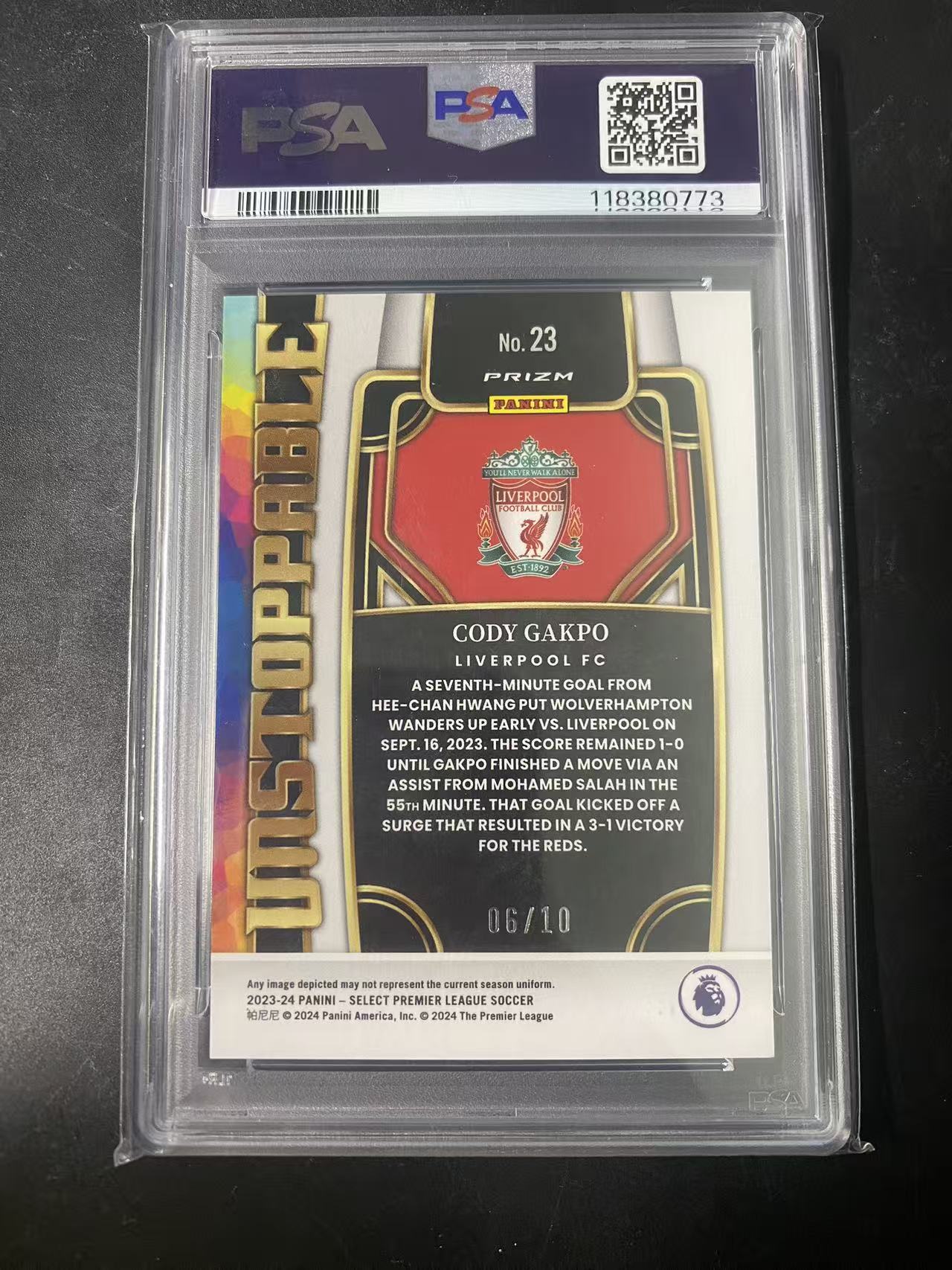 2023-24 Panini Select Cody Gakpo 英超 加克波 06/10编 金折 低编 利物浦 荷兰 未来可期 psa评级 收藏必备