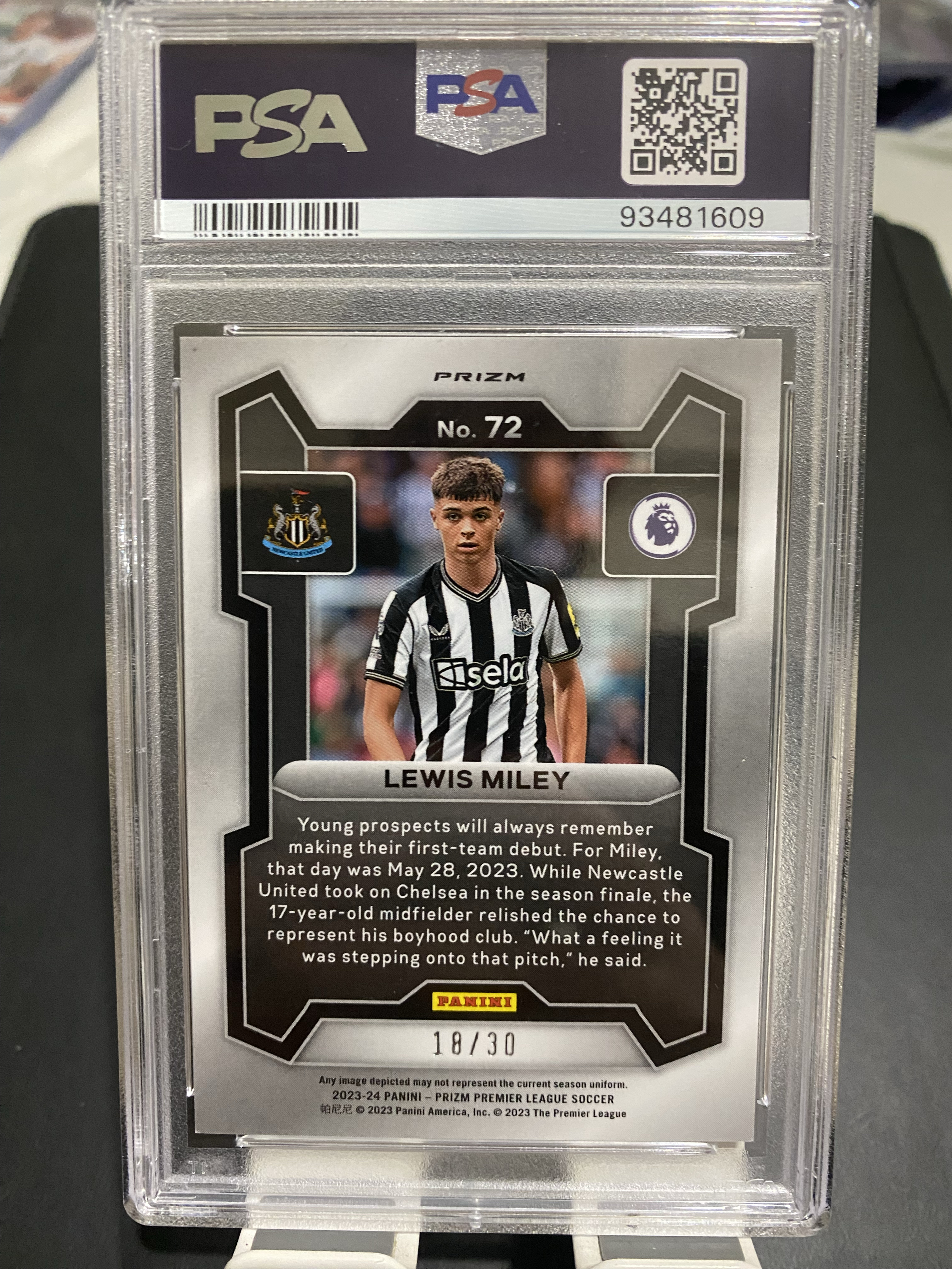 2023-24 Panini Prizm Miley 英超pz系列 喜鹊军团 纽卡斯尔联 RC新秀 大火新秀 刘易斯 米利 18/30 低编 红choice折 收藏必备 卡品如图 psa9分