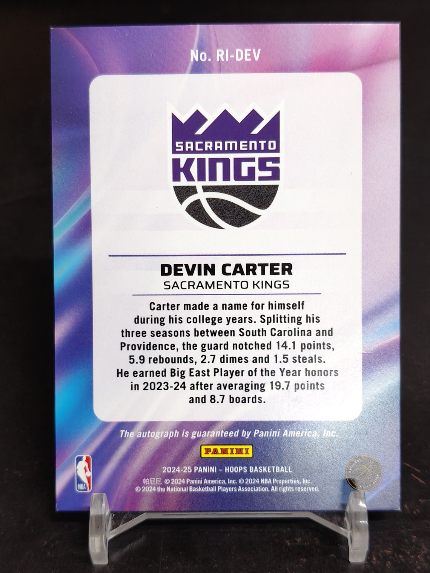 【浩行拍卖 截标预付82%】2024-25 panini hoops devin carter 国王 德文 卡特 RC 新秀 签字 ink签 折射 专收必备 瑕疵看图「豆穗」1102M01夢