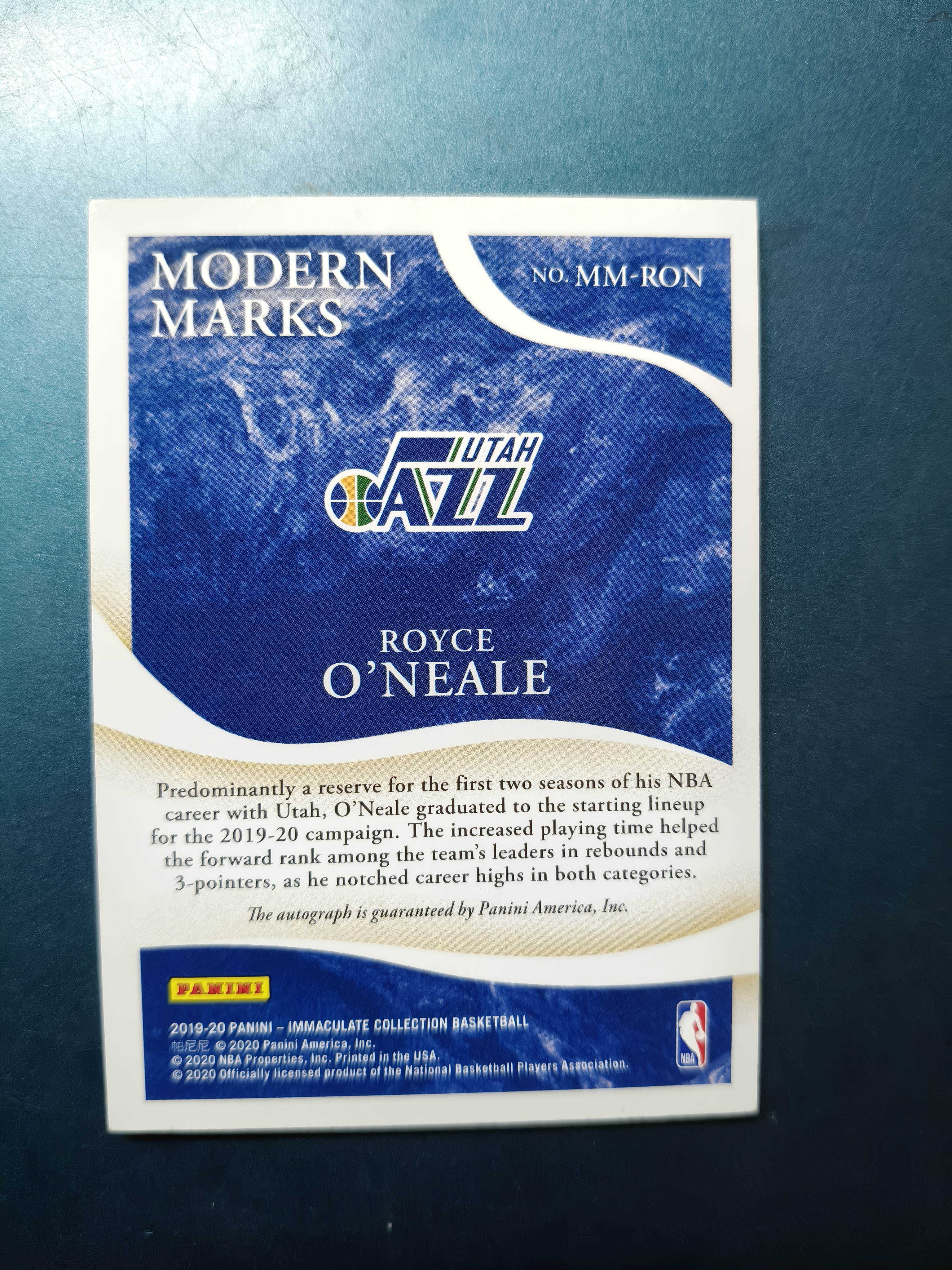 2019-20 Panini Immaculate Royce O'Neale imm 爱咪咪 罗伊斯 奥尼尔 小奥尼尔 75编 签字 MODERN MARKS签 犹他爵士队 锋卫摇摆人