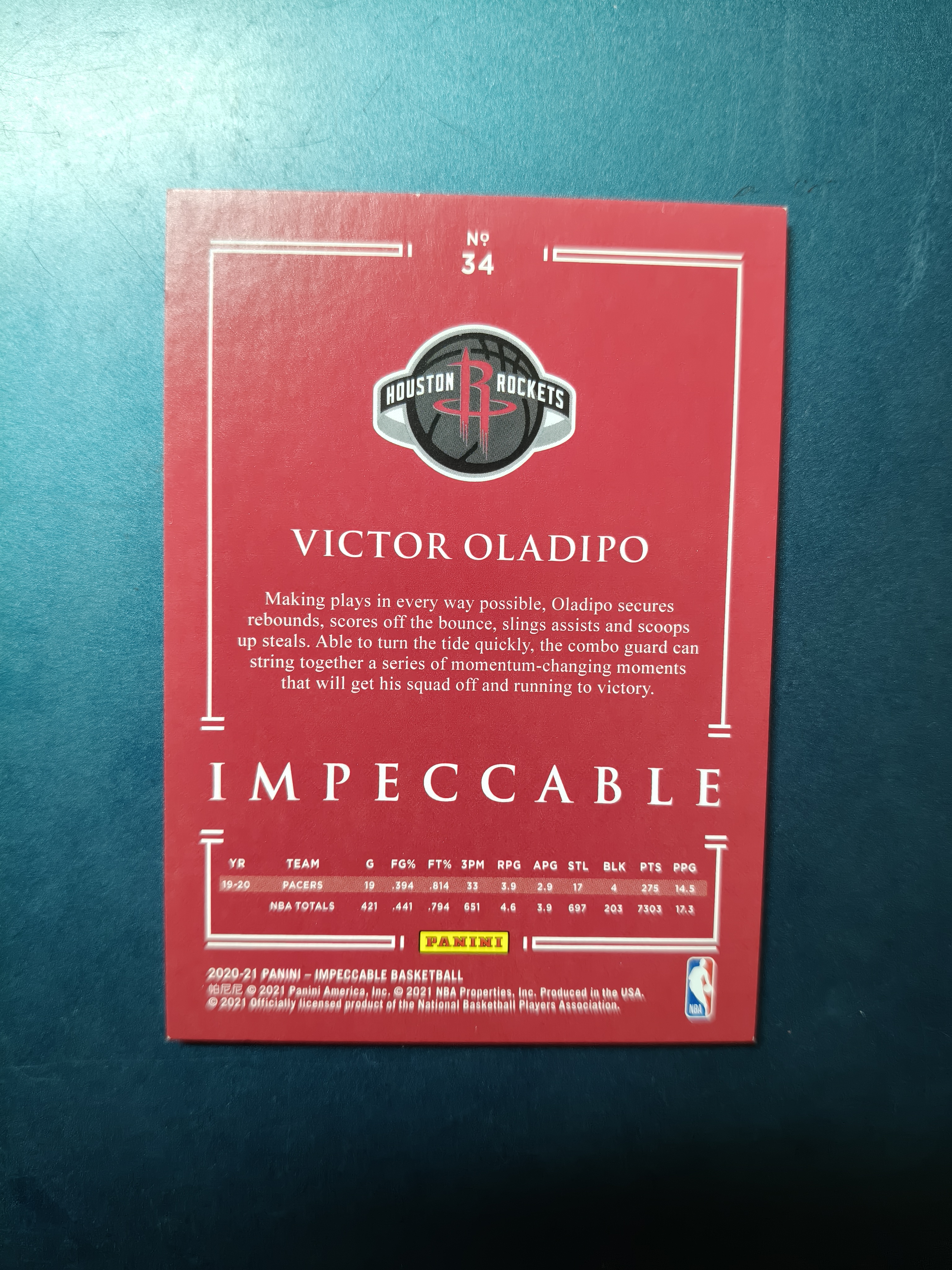 2020-21 Panini Impeccable Victor Oladipo 小真金 真金白银 火箭 维克托 奥拉迪波 60编 Base 金平行