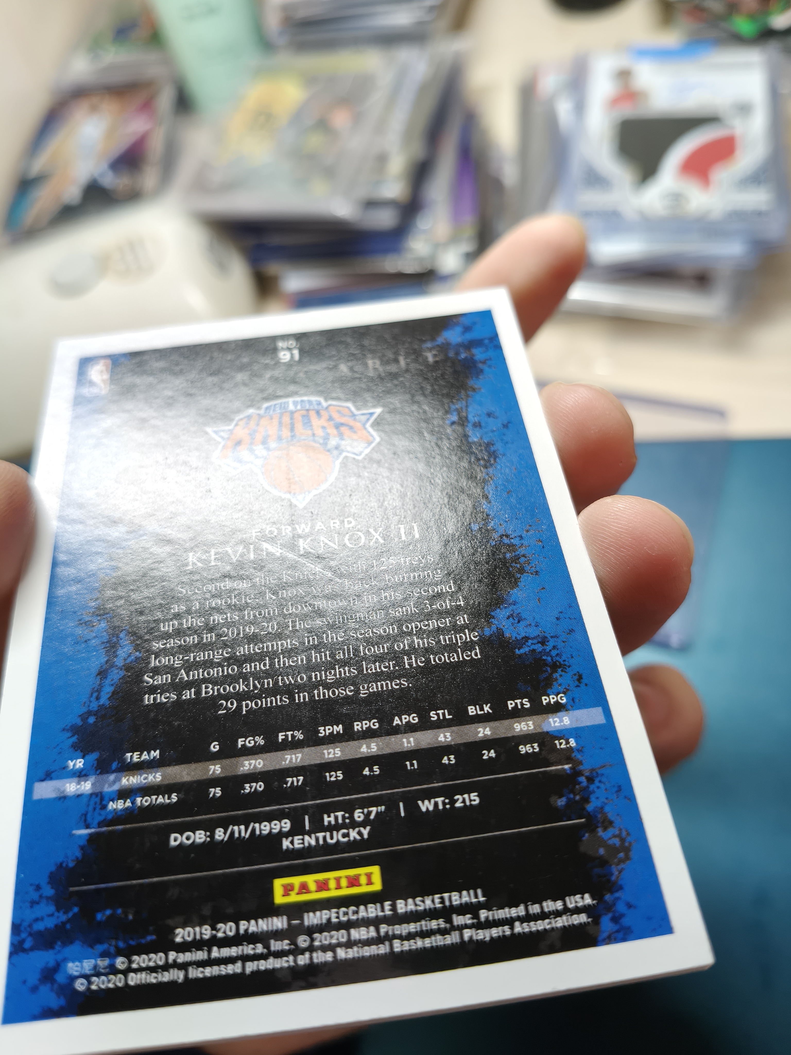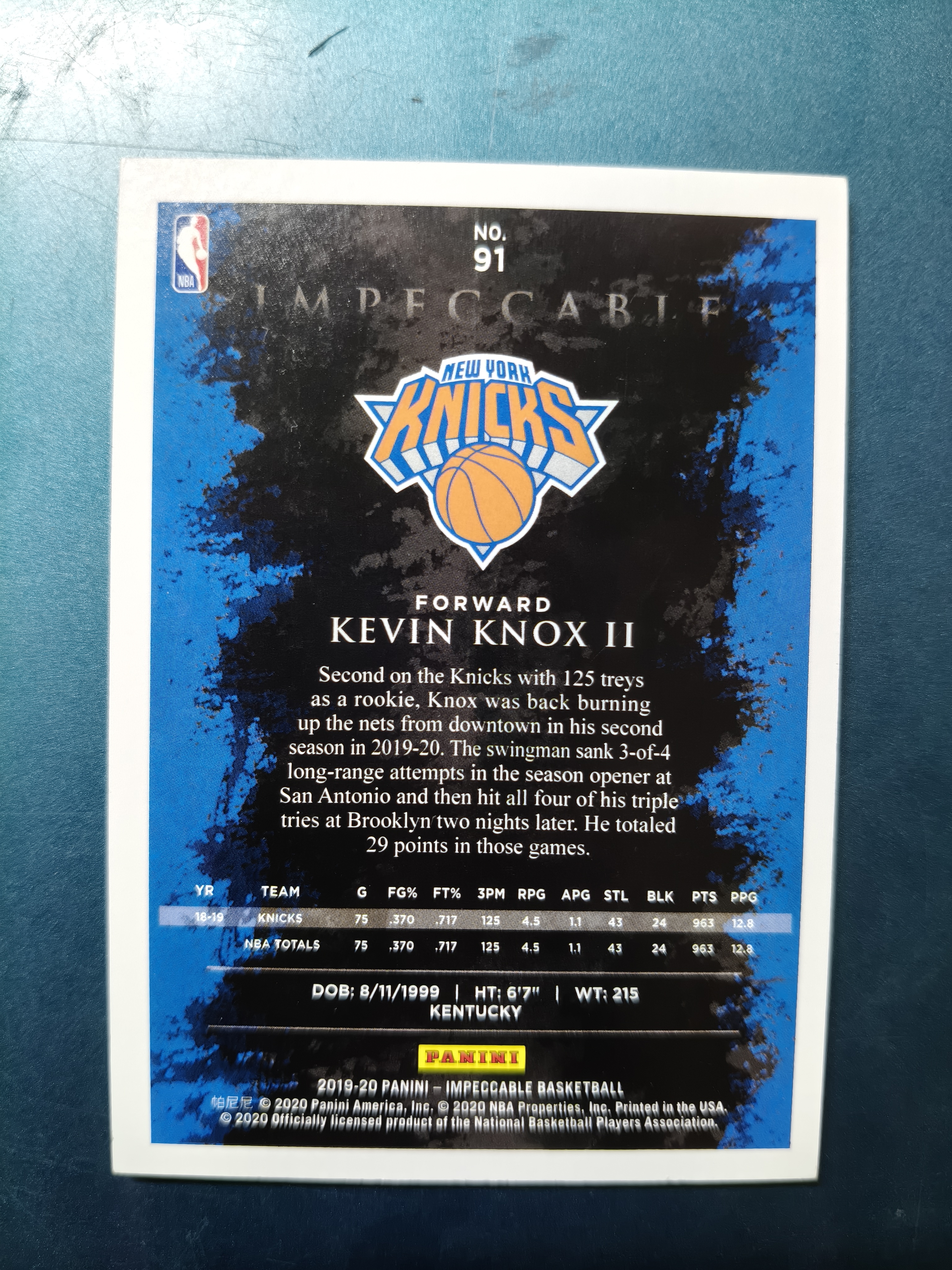 2019-20 Panini Impeccable Kevin Knox II 小真金 尼克斯 诺克斯 75编 base 高端系列 带编限量
