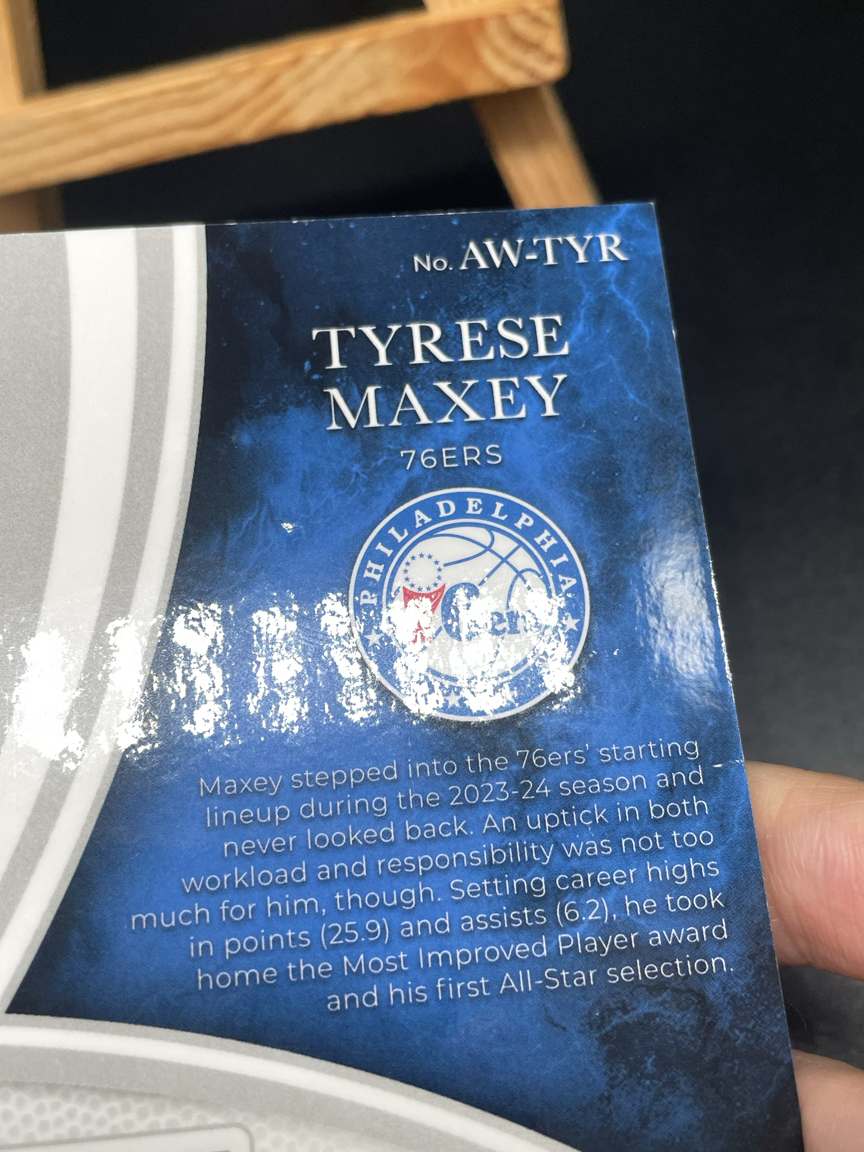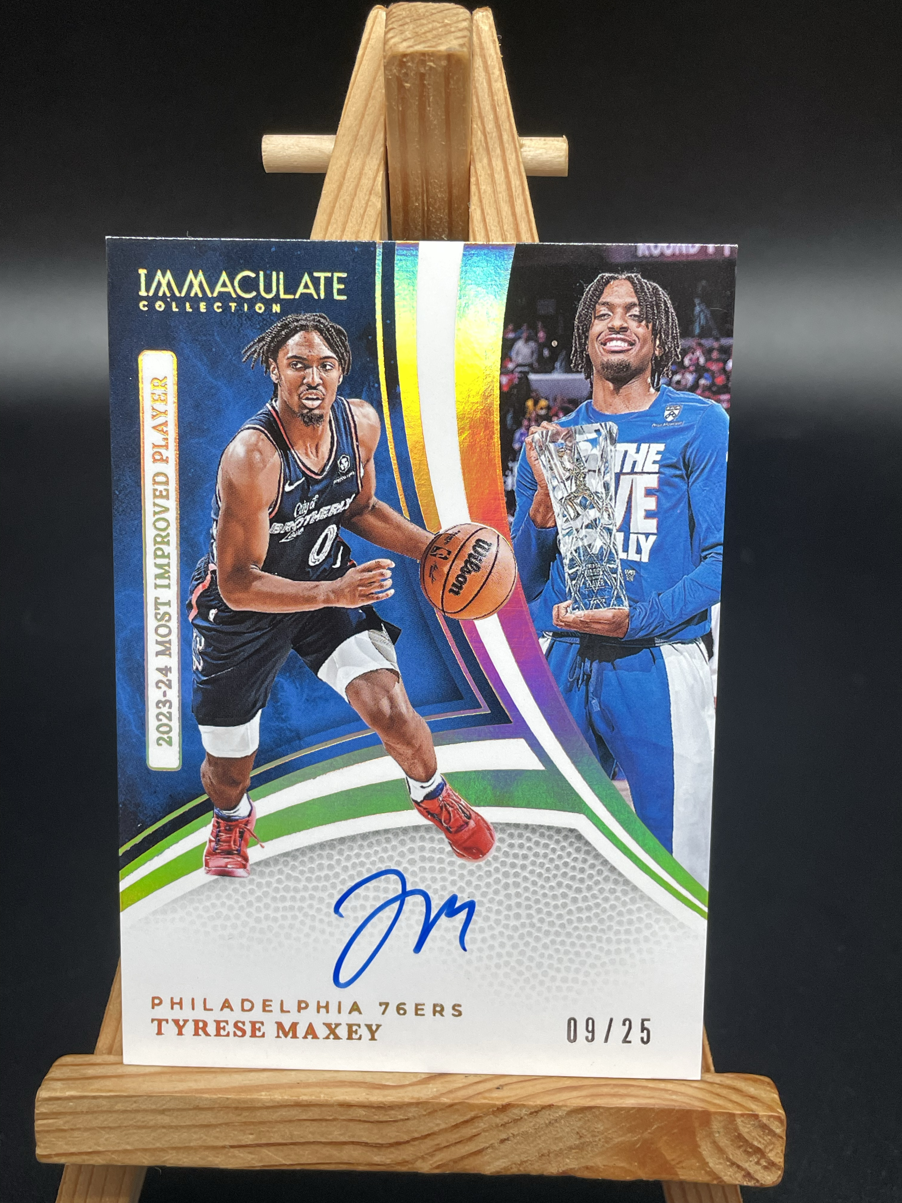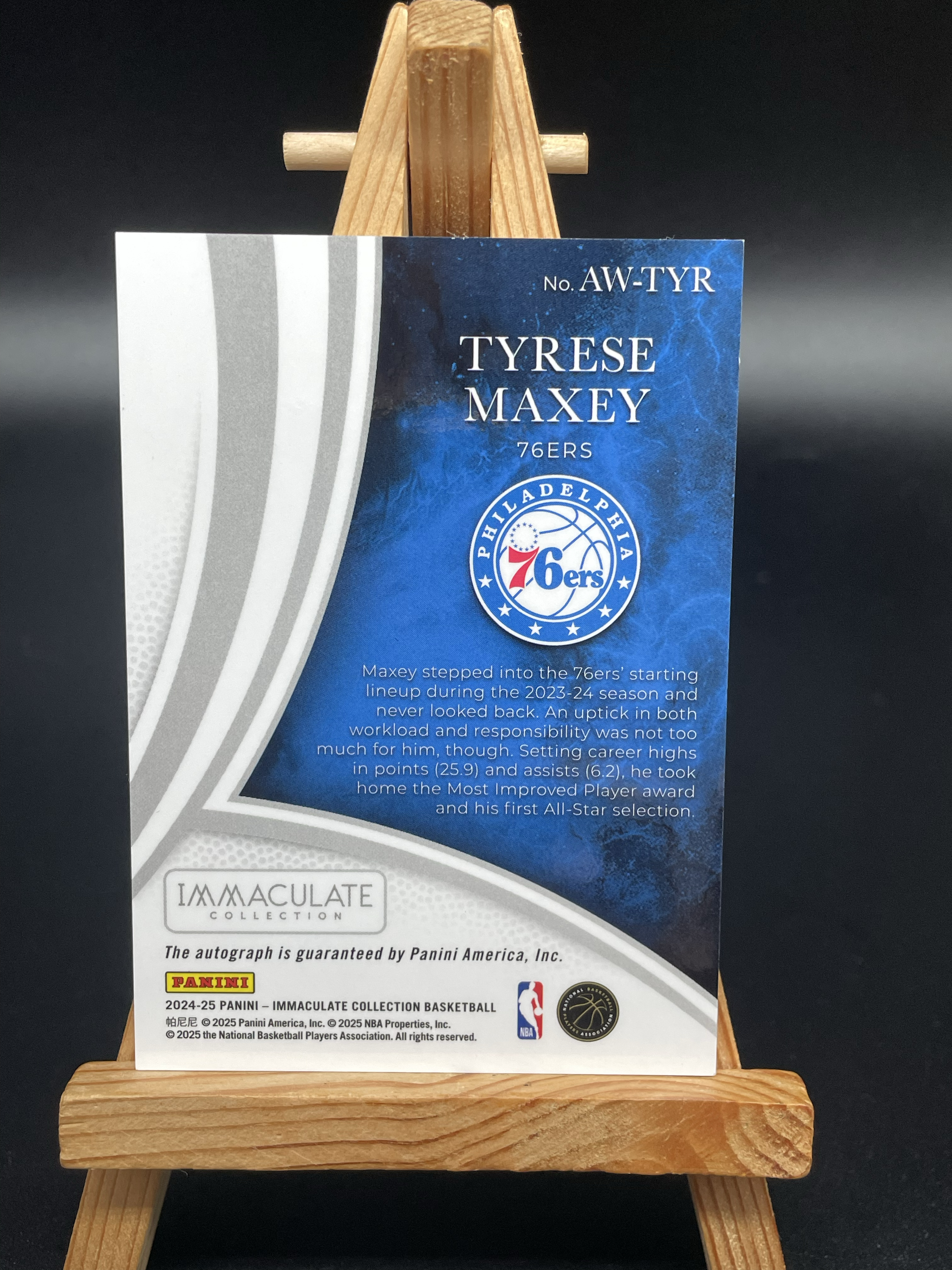 2024-25 Panini Immaculate Tyrese Maxey 【白鸟代卖 口罩 寄付特快】IMM 捧杯 最佳进步奖 76人 马克西 /25编 签字 卡签 微瑕如图