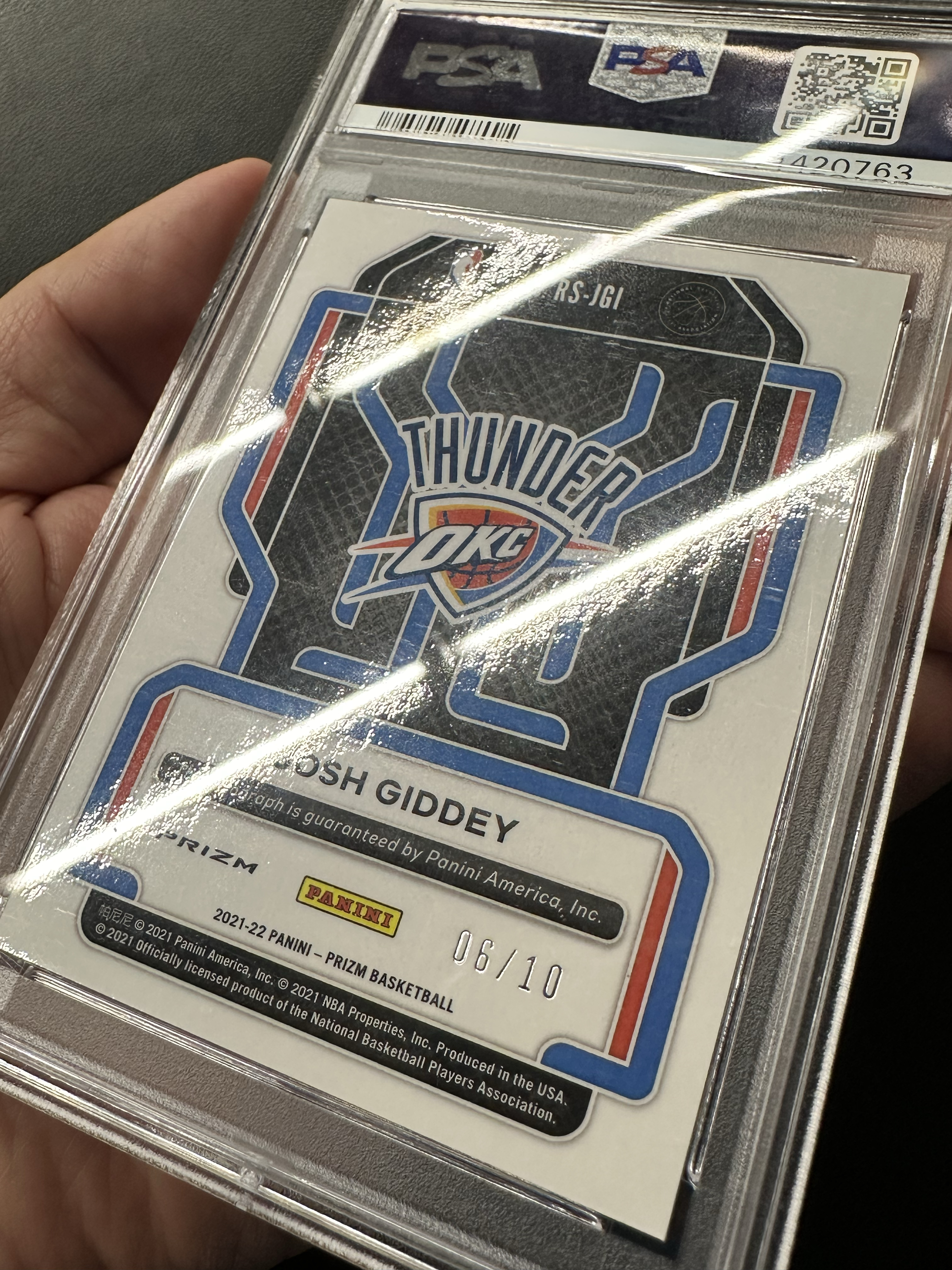 2021-22 Panini Prizm Josh Giddey RC pz系列 雷霆 吉迪 新秀 限量 10编 正金折 正base签字 评级 psa9 热门新秀 投资收藏佳品 卡砖细节如图
