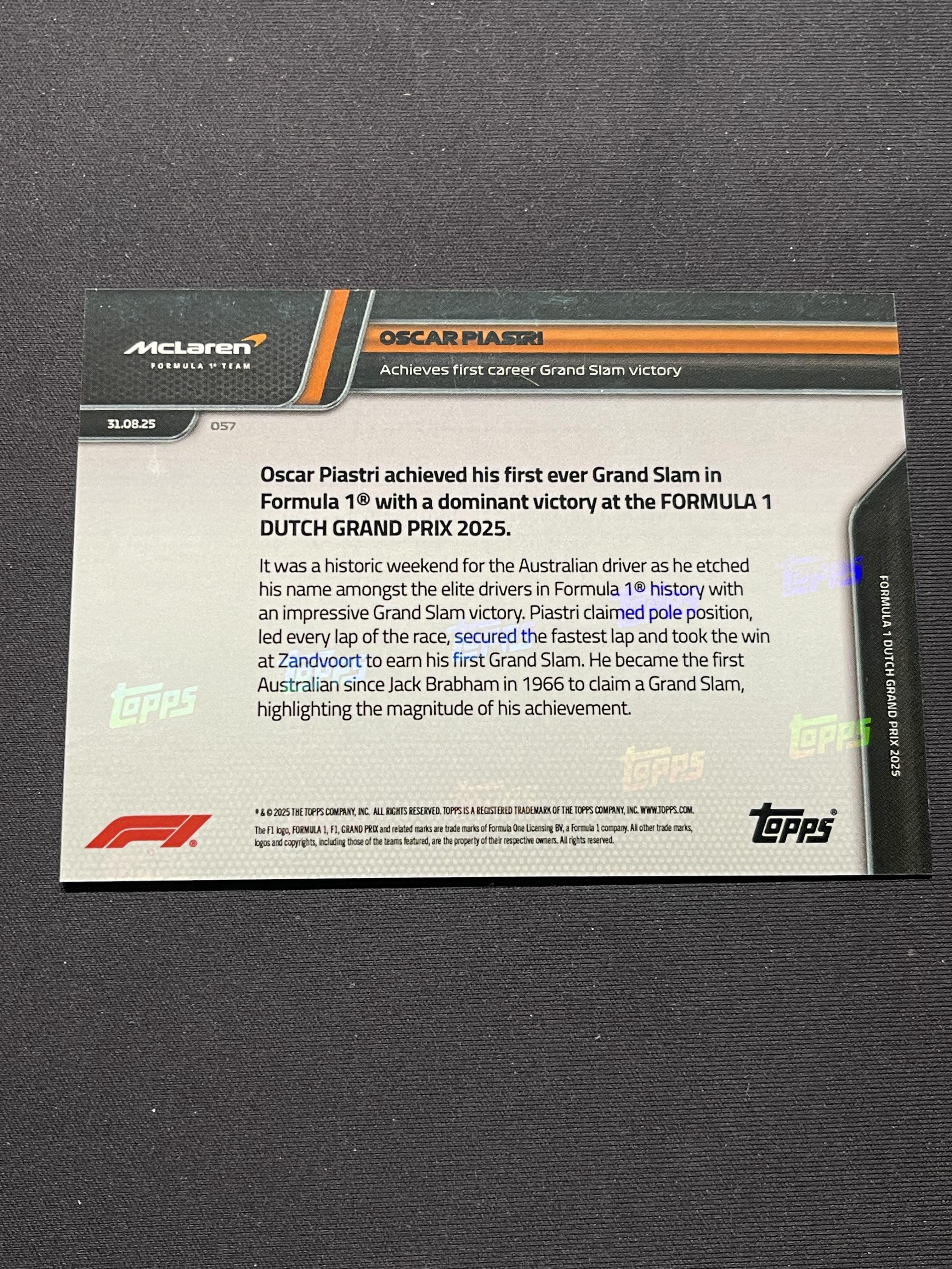 2025 Topps Now Oscar Piastri F1 迈凯伦车队 皮亚斯特里 折射 橙折 13/25编 实现职业生涯首个大满贯胜利 不累计「老夫子」蜡笔