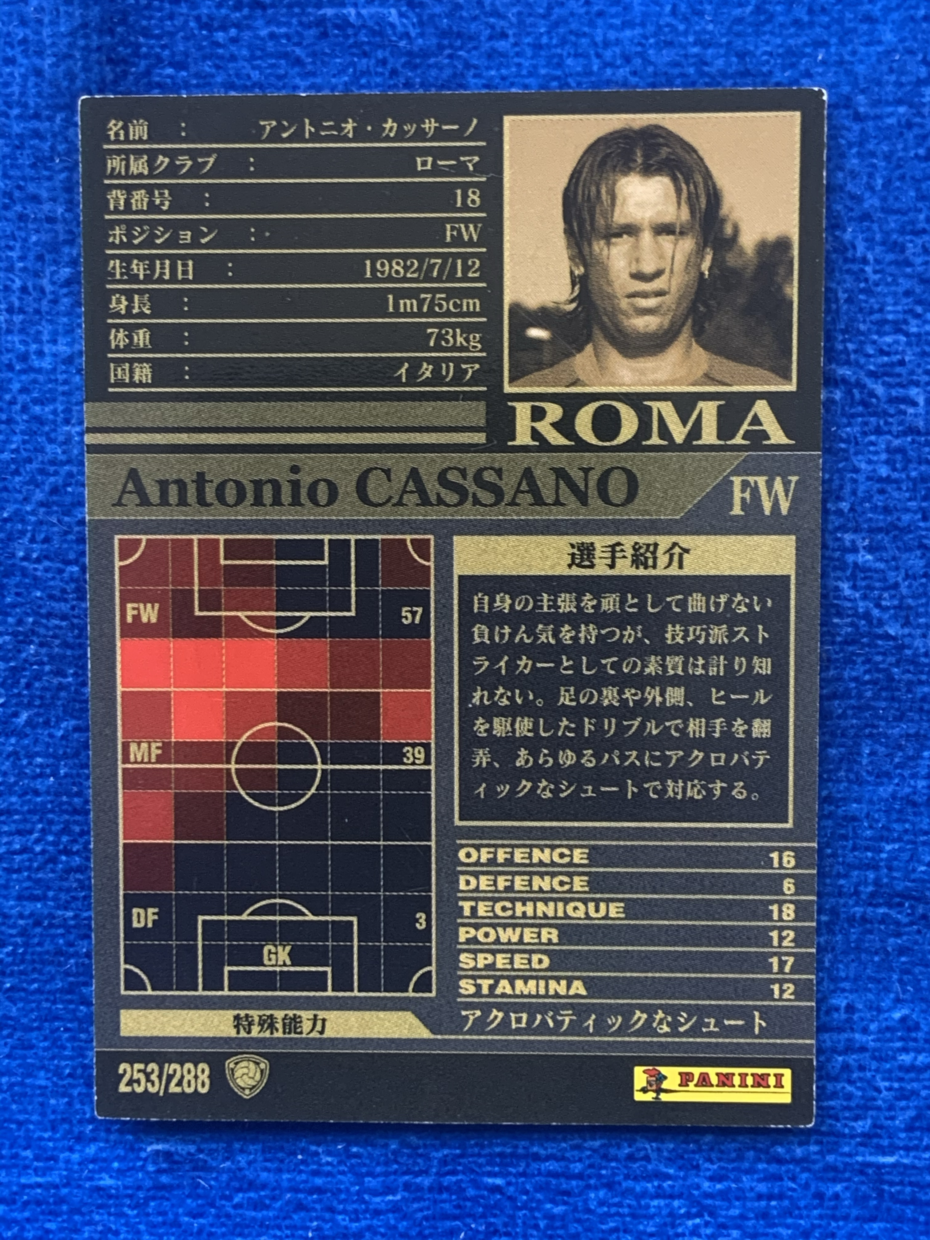 2002-03 Panini Wccf Antonio Cassano 帕尼尼 意甲 罗马Roma 卡萨诺 意大利国脚Italy 皇马 ACMilan 经典老卡 近乎绝版 不保卡品 ebay有价