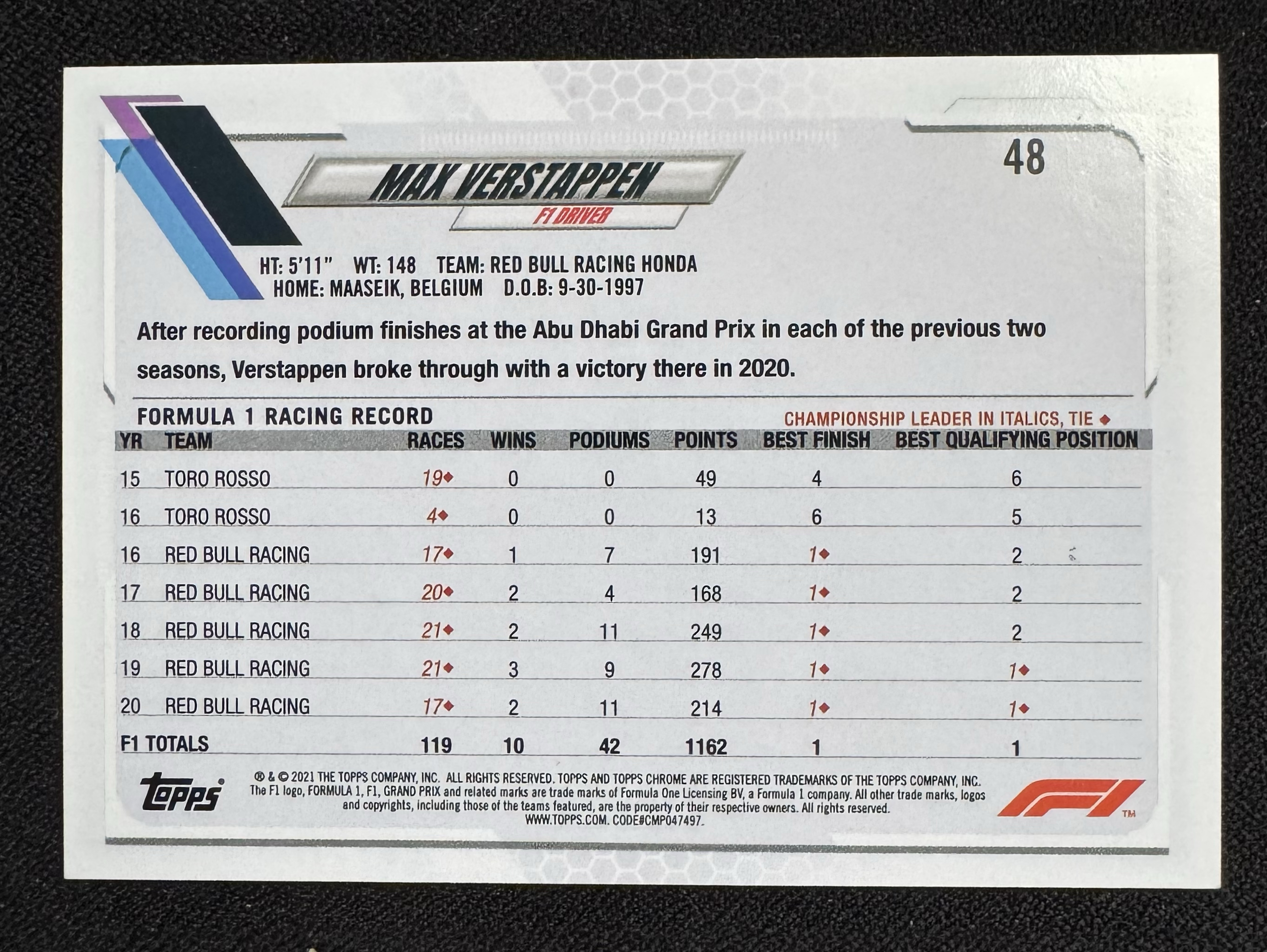 2021 Topps Chrome Max Verstappen F1 维斯塔潘 潘子 庆祝选图 紫绿折 大比例 四冠王 红牛车队 收藏凑套必备