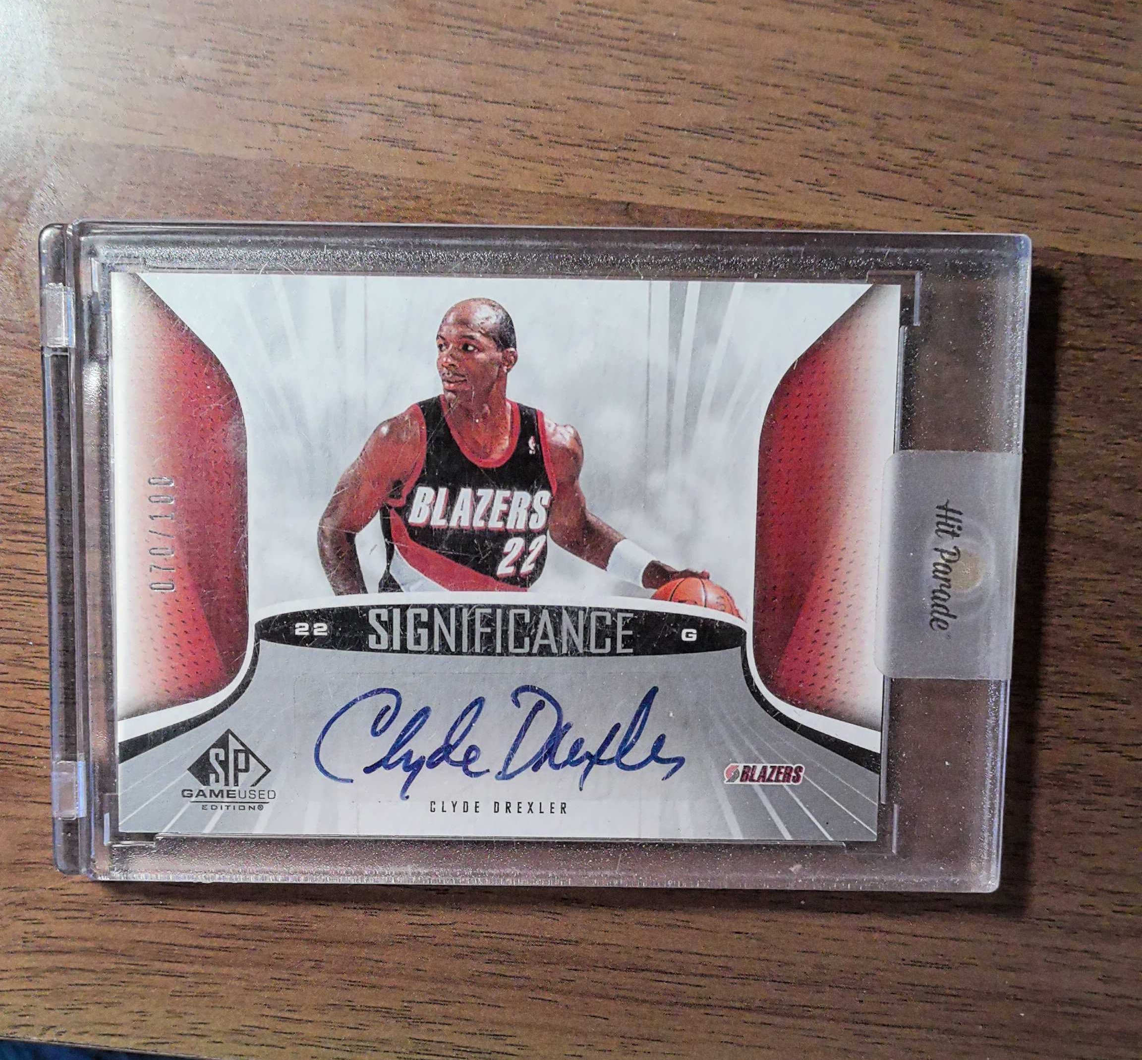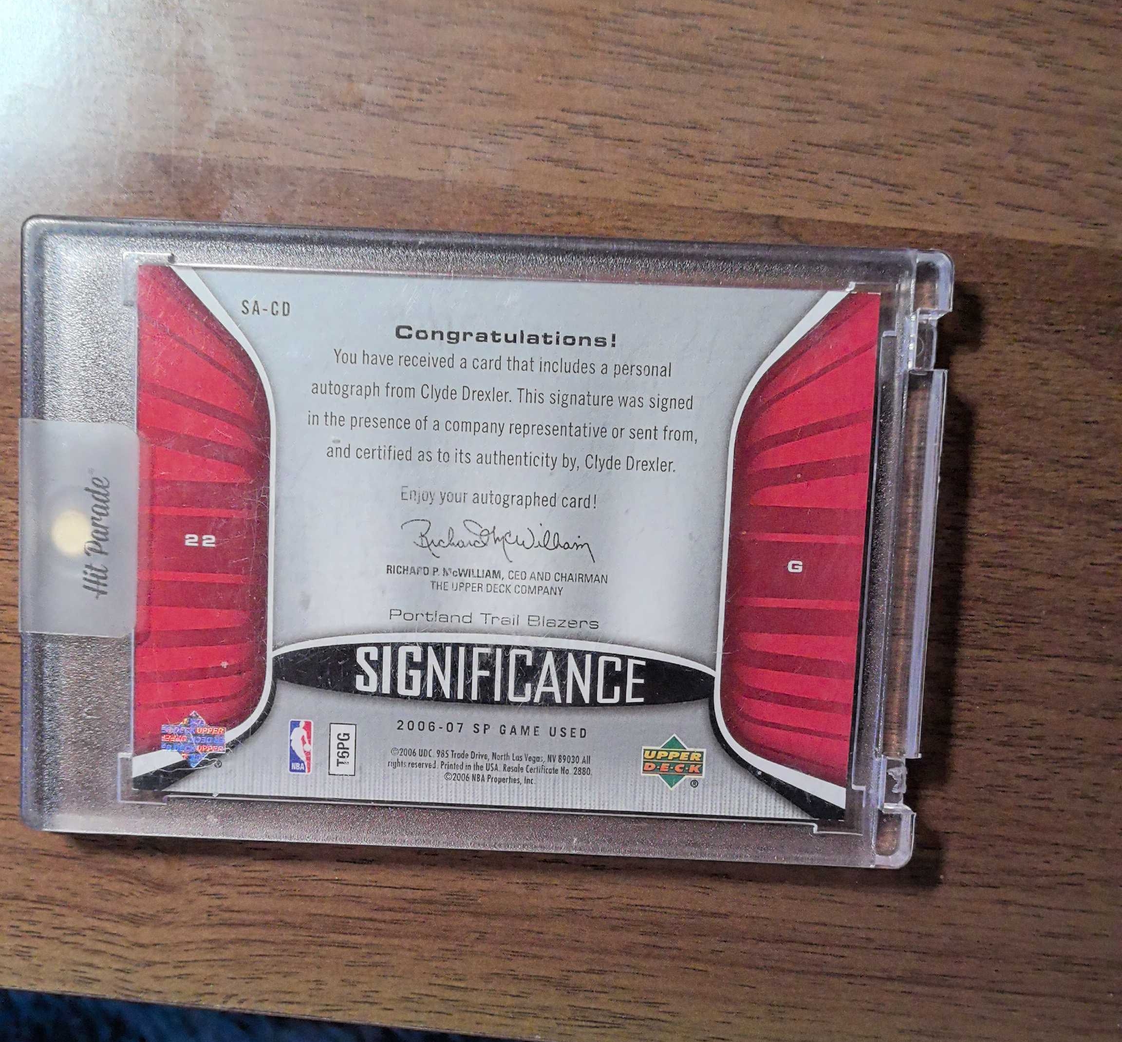 2006-07 Upper Deck SP Game Used Clyde Drexler 克莱德·德雷克斯勒,滑翔机 司职得分后卫/小前锋 他是NBA传奇球星,带编贴 签字 卡品如图