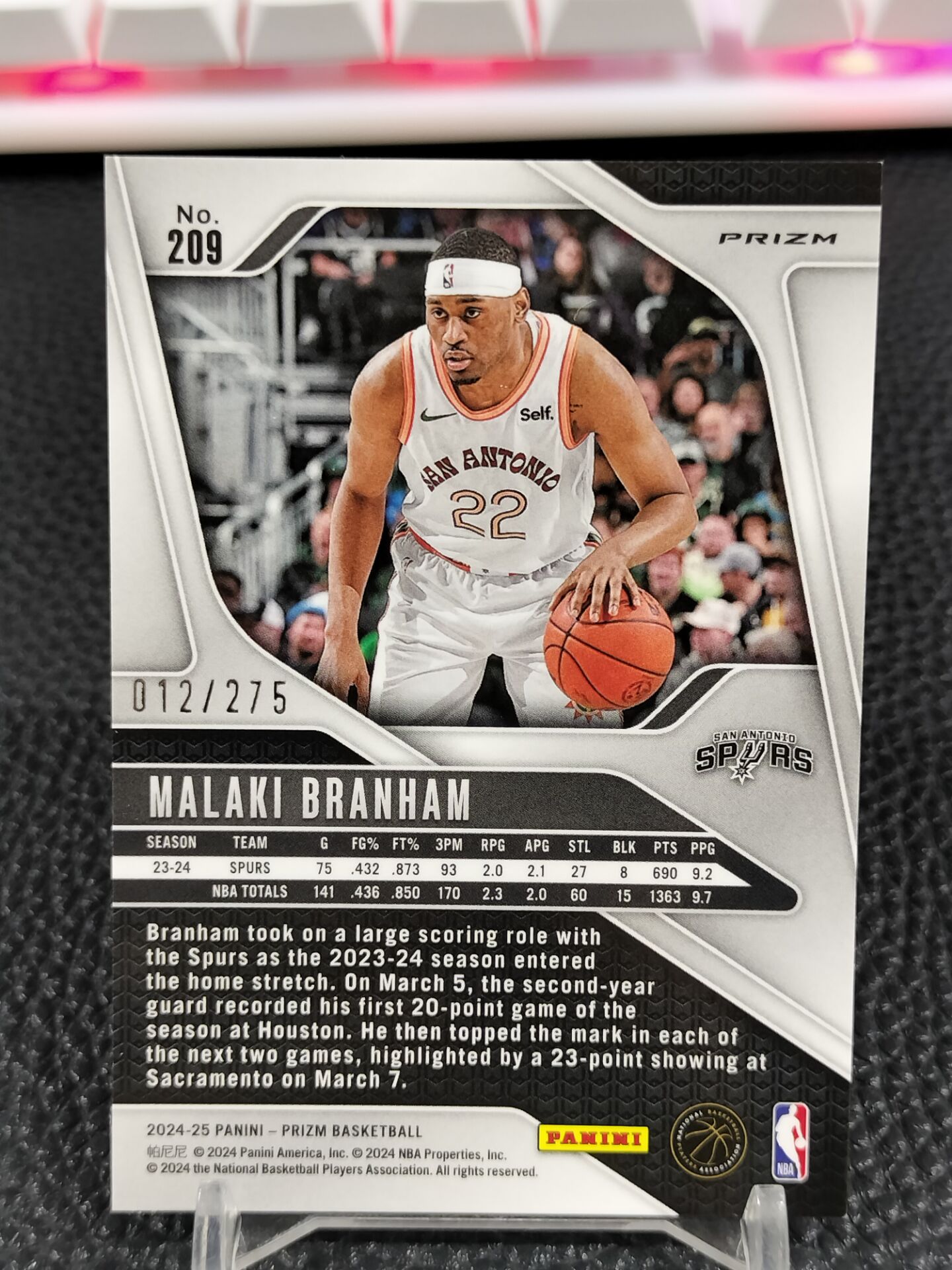 【浩行拍卖 截标预付82%】2024-25 panini prizm malaki branham 马刺 马拉凯 布拉纳姆 布兰纳姆 白镭射线折 折射 12/275编 专收必备 瑕疵看图「夏历」1102h02飛