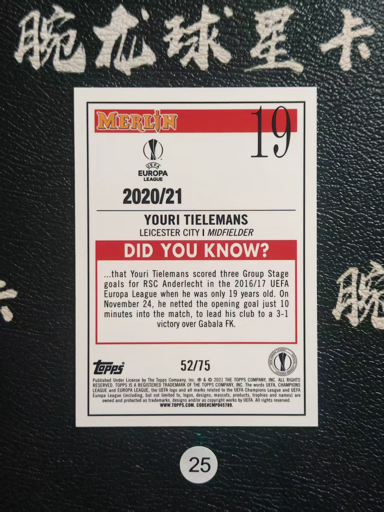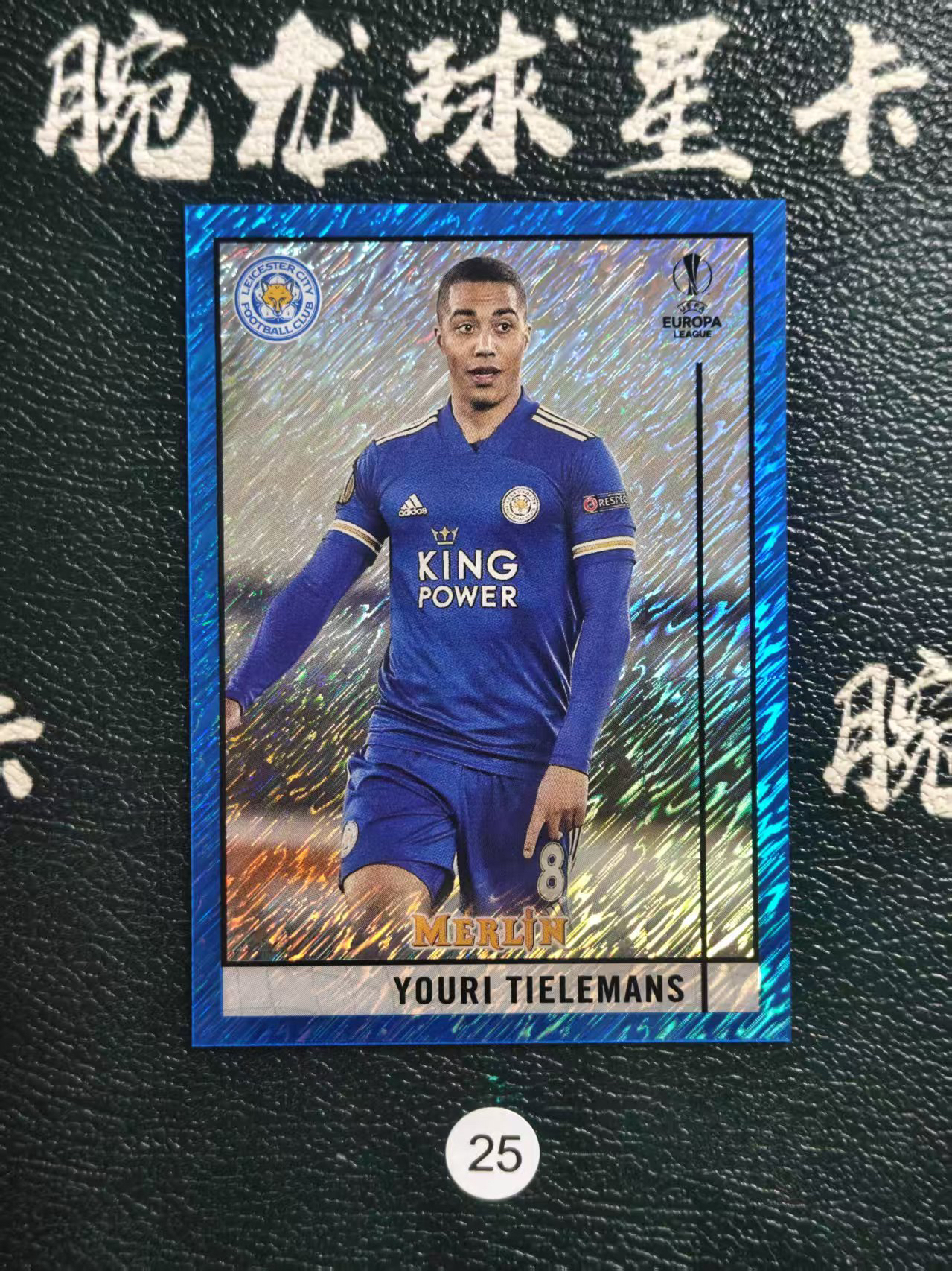 2021 【腕龙拍卖 接代卖】 腕龙一只飞鱼龙AJ8 Topps Merlin 欧冠 梅林 蒂勒曼斯 莱斯特城 蓝shimmer折 52/75编 YOURI TIELEMANS 卡品如图 收藏必备