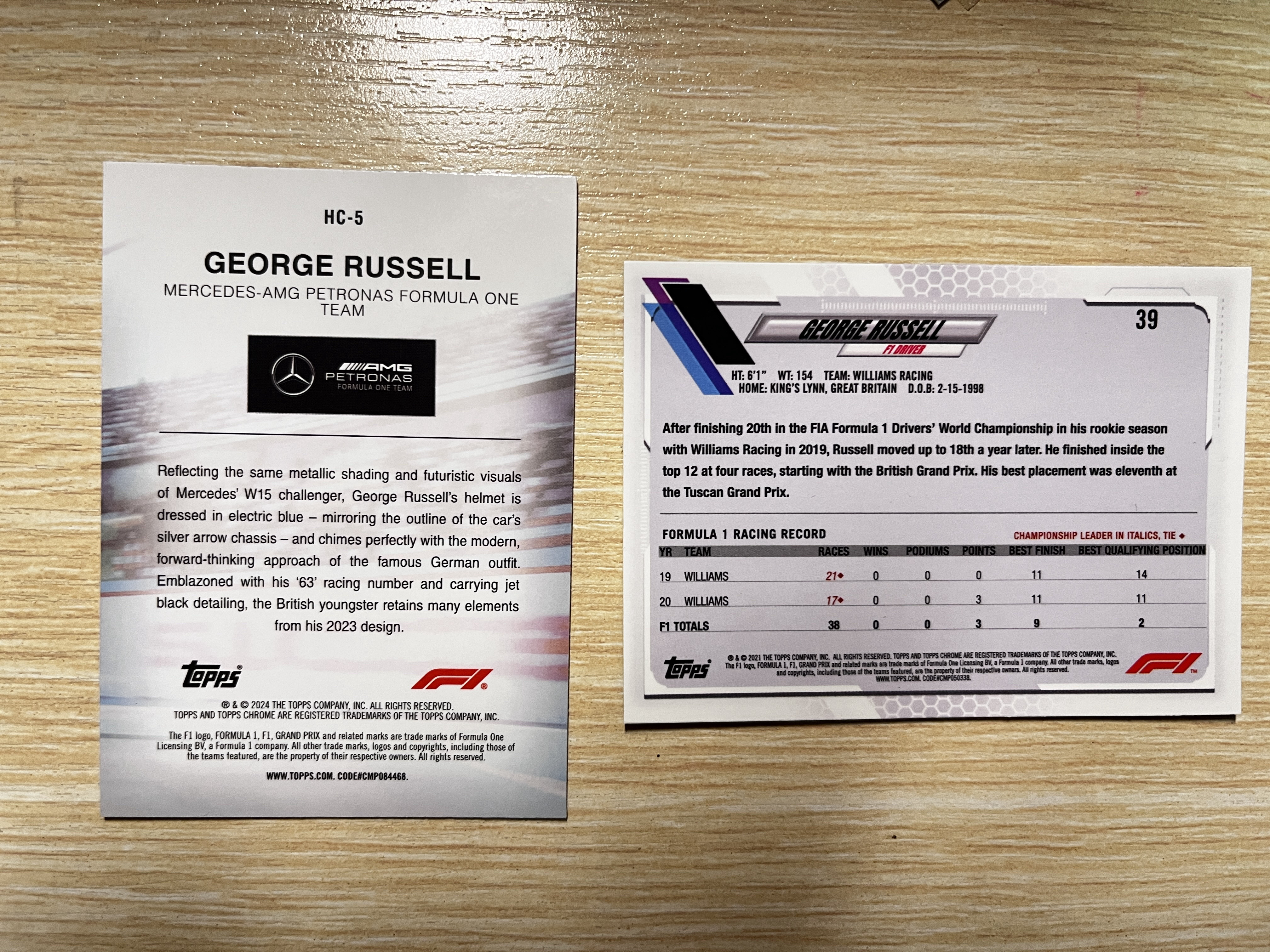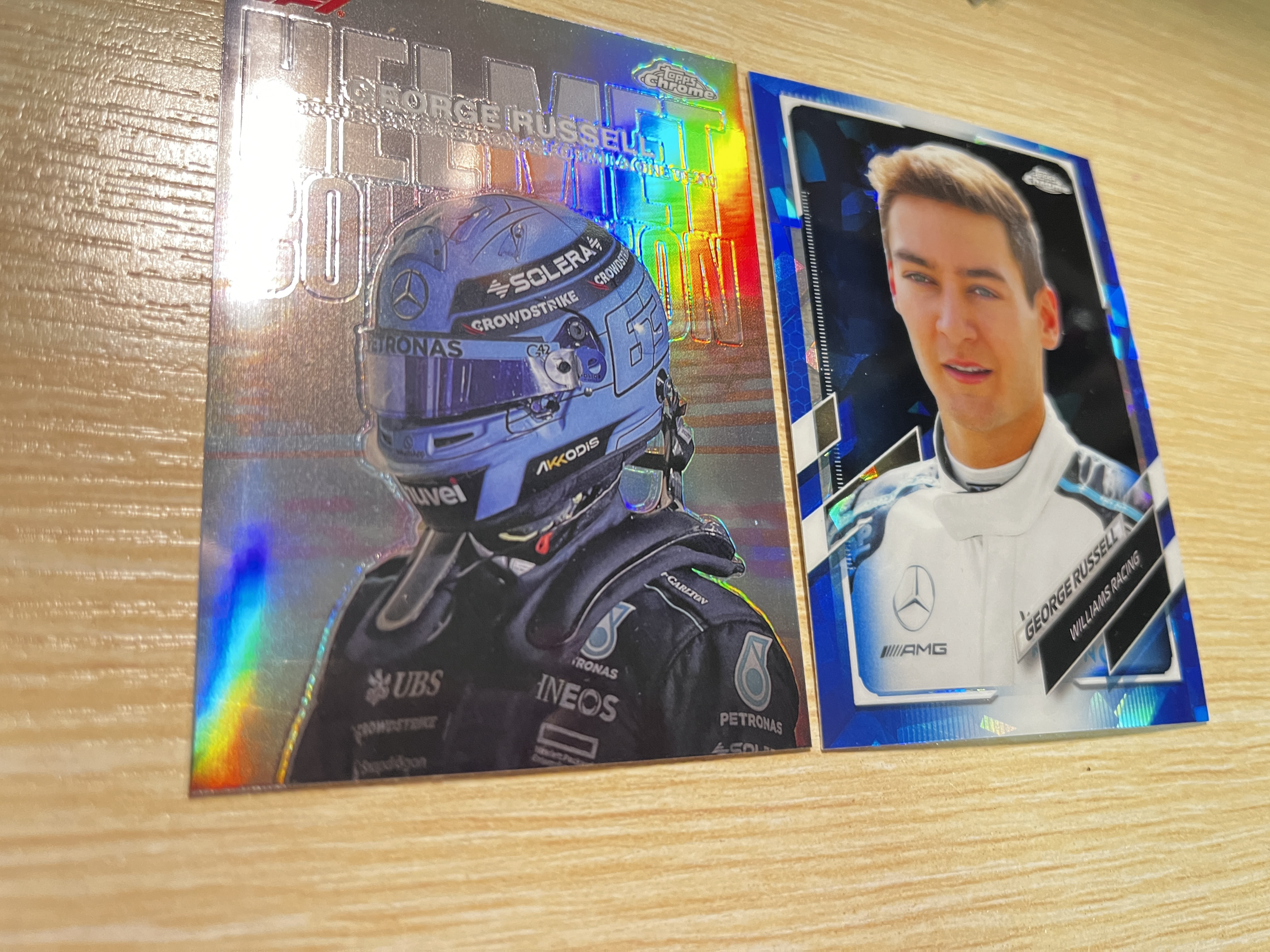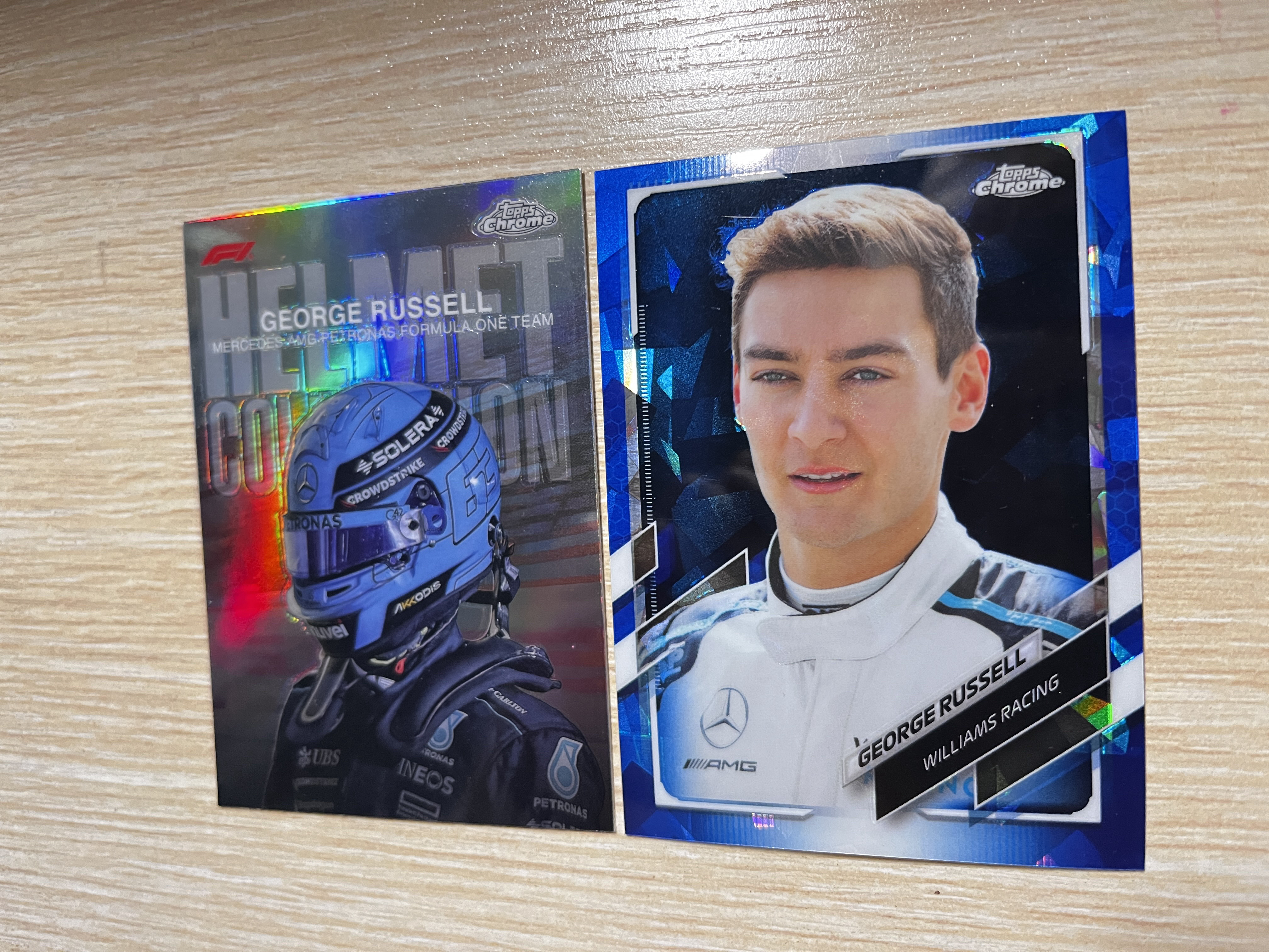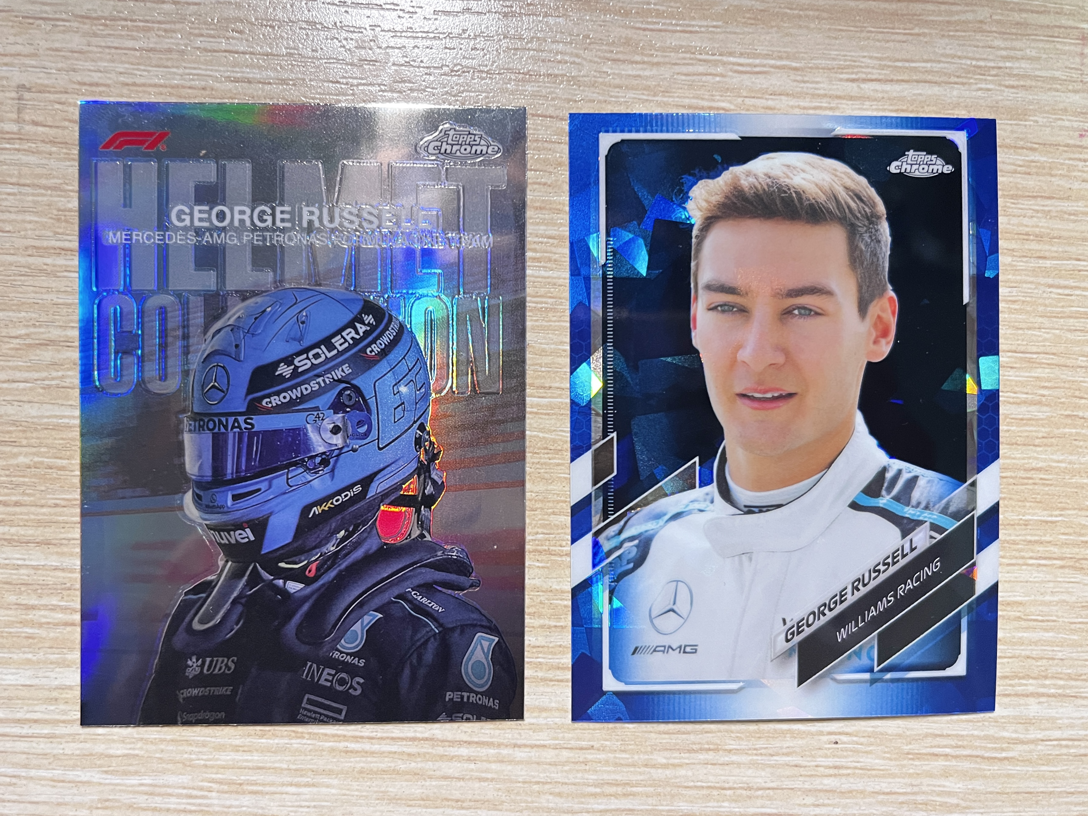 乔治拉塞尔 头盔+蓝宝石 lot 2张 Topps Chrome George Russell F1 乔治 拉塞尔 奔驰车队 头盔 特卡 银折 折射 蓝宝石 蓝碎冰