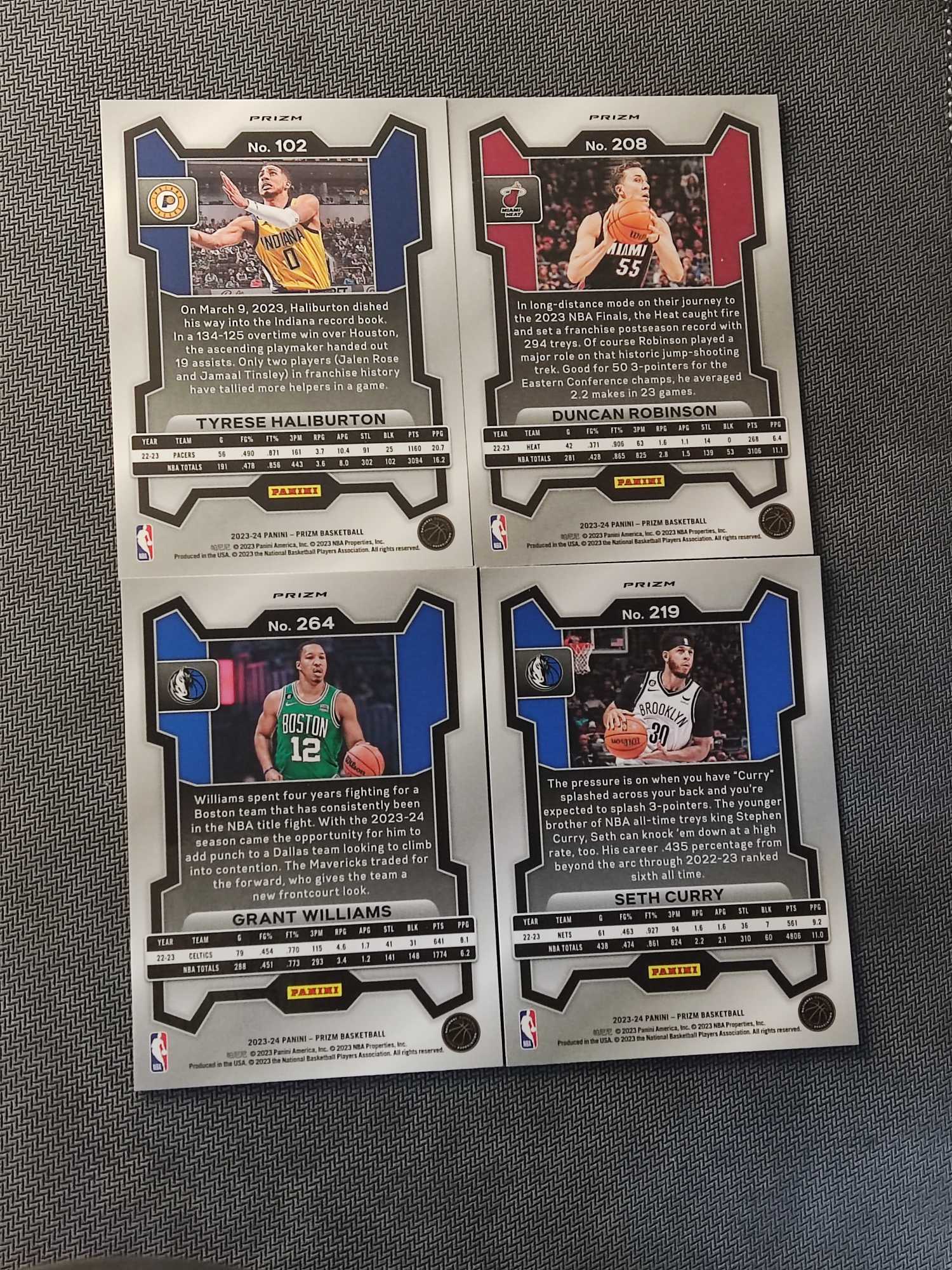 [满分代拍] 2023-24 panini prizm 哈里伯顿 塞斯 库里格兰特 威廉姆斯 罗宾逊 lot 蓝波纹 银折 折射 多卡 卡品如图