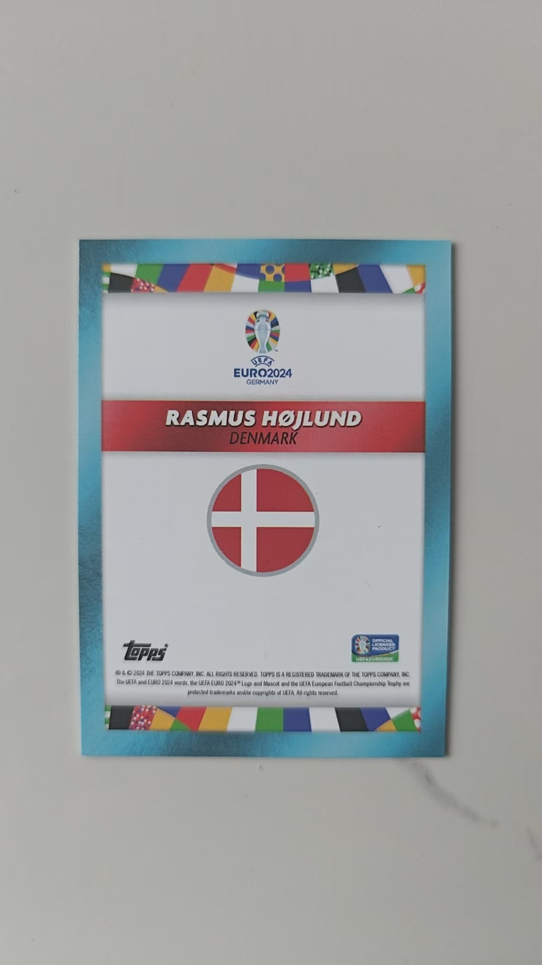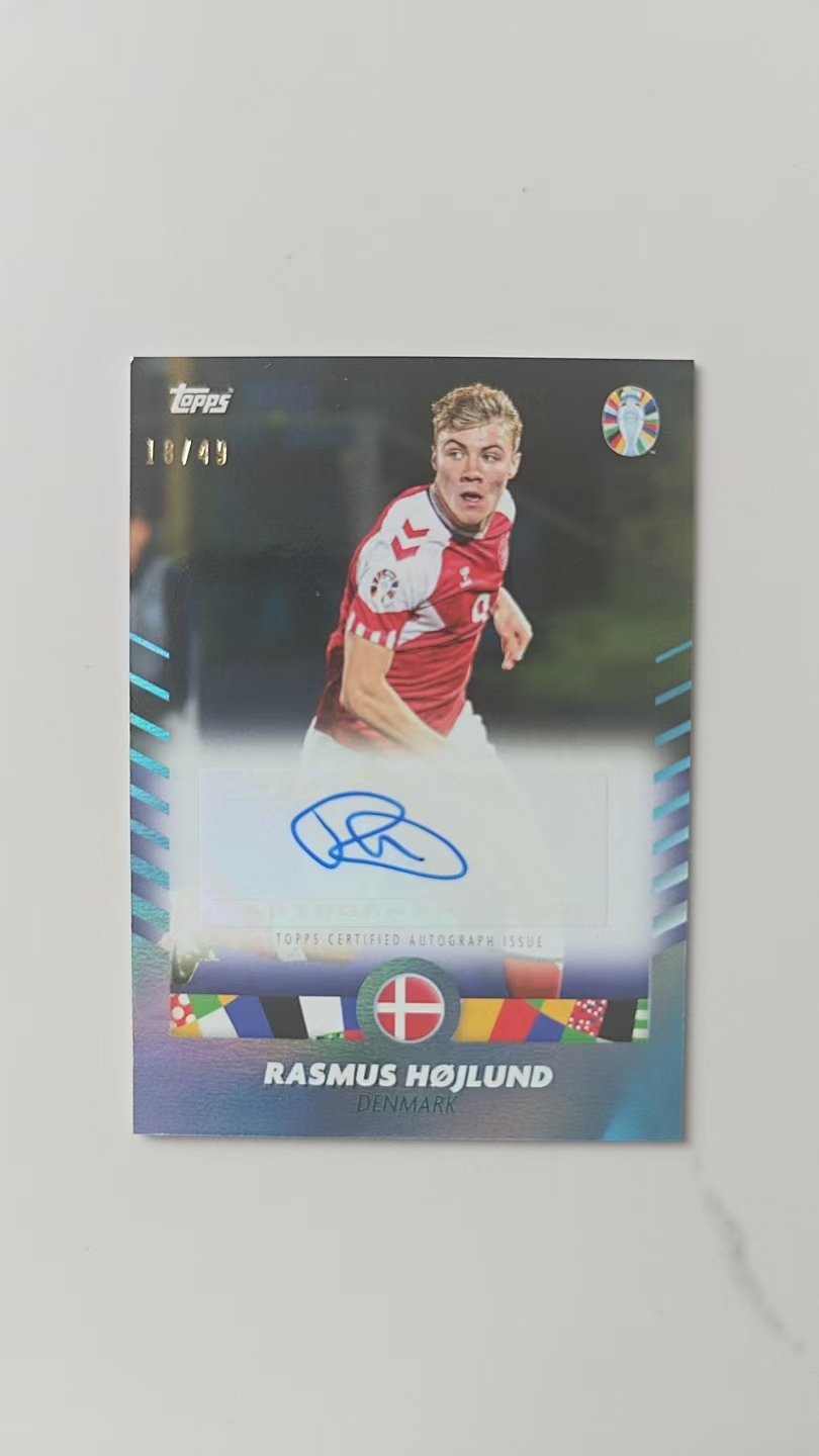 2024 Topps Mourinho Euro 2024 Rasmus Hojlund 拉斯穆斯·霍伊伦德 曼联 丹麦 带编签字 18/49 蓝折 墨迹完美 穆里尼奥白金盒 穆里尼奥精选盒 欧洲杯