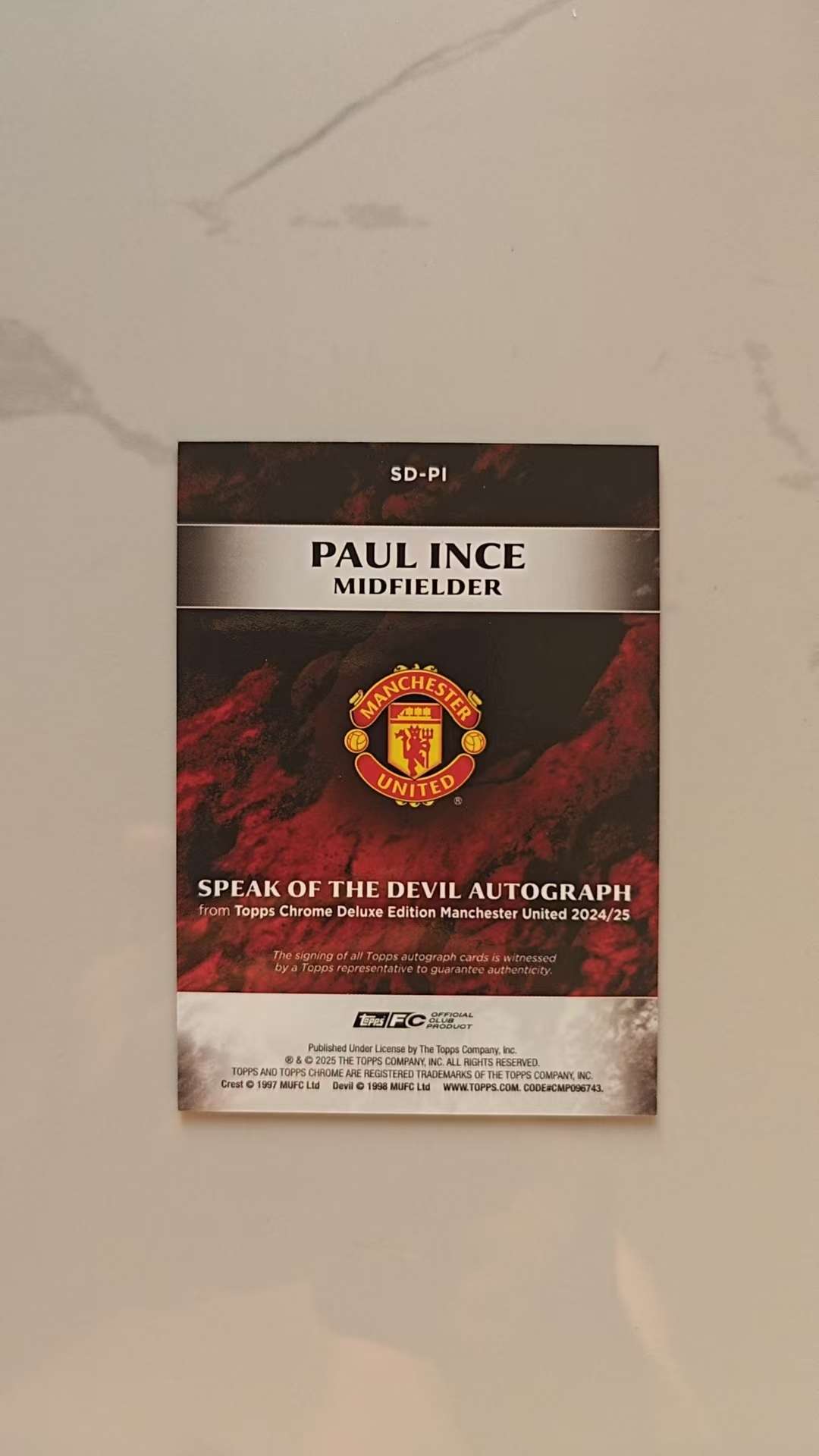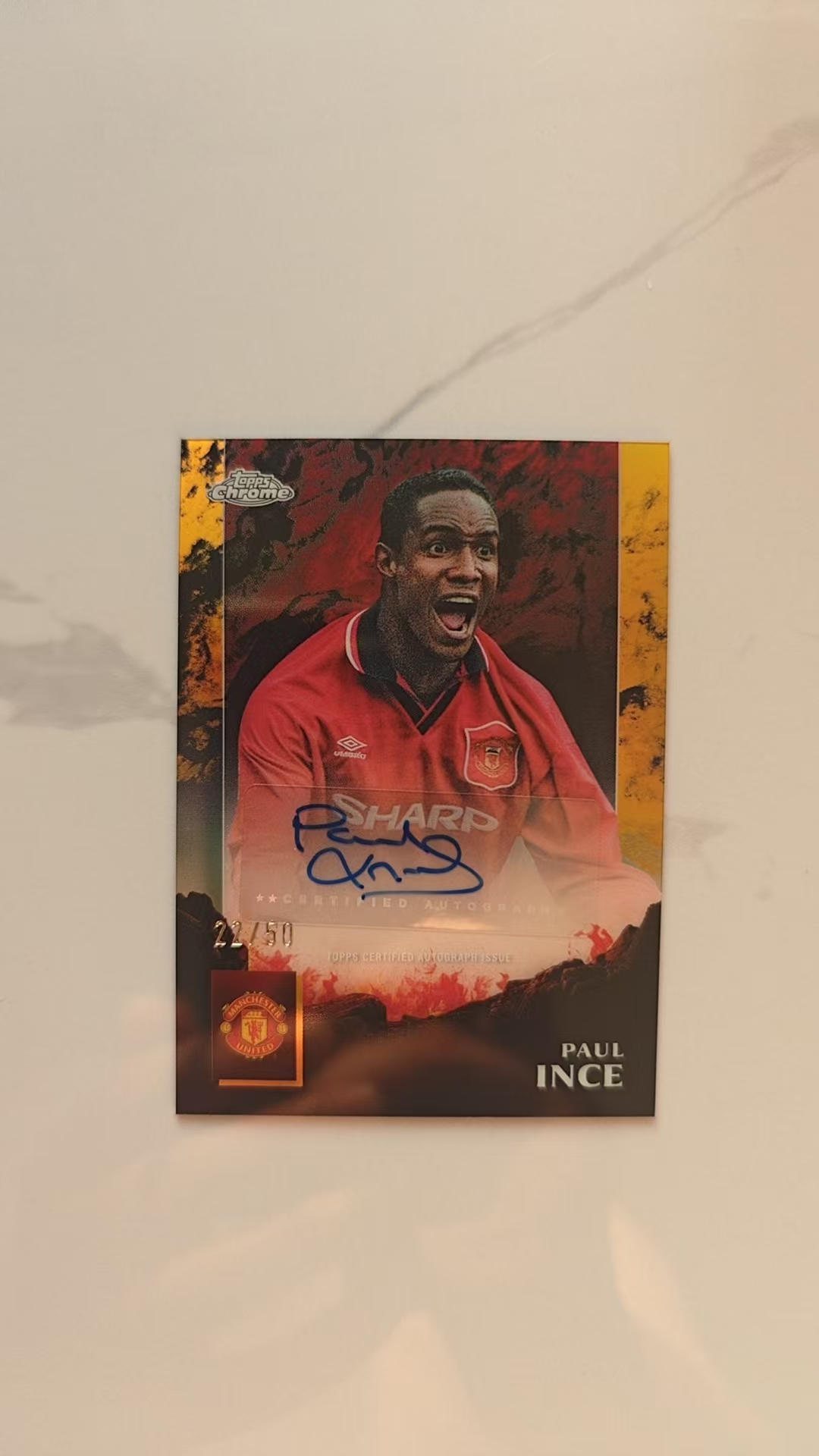 2024-25 Topps Manchester United Chrome Paul Ince 保罗·因斯 英格兰 带编签字 22/50 金折 墨迹完美 曼联队盒 曼联TC队盒 传奇巨星