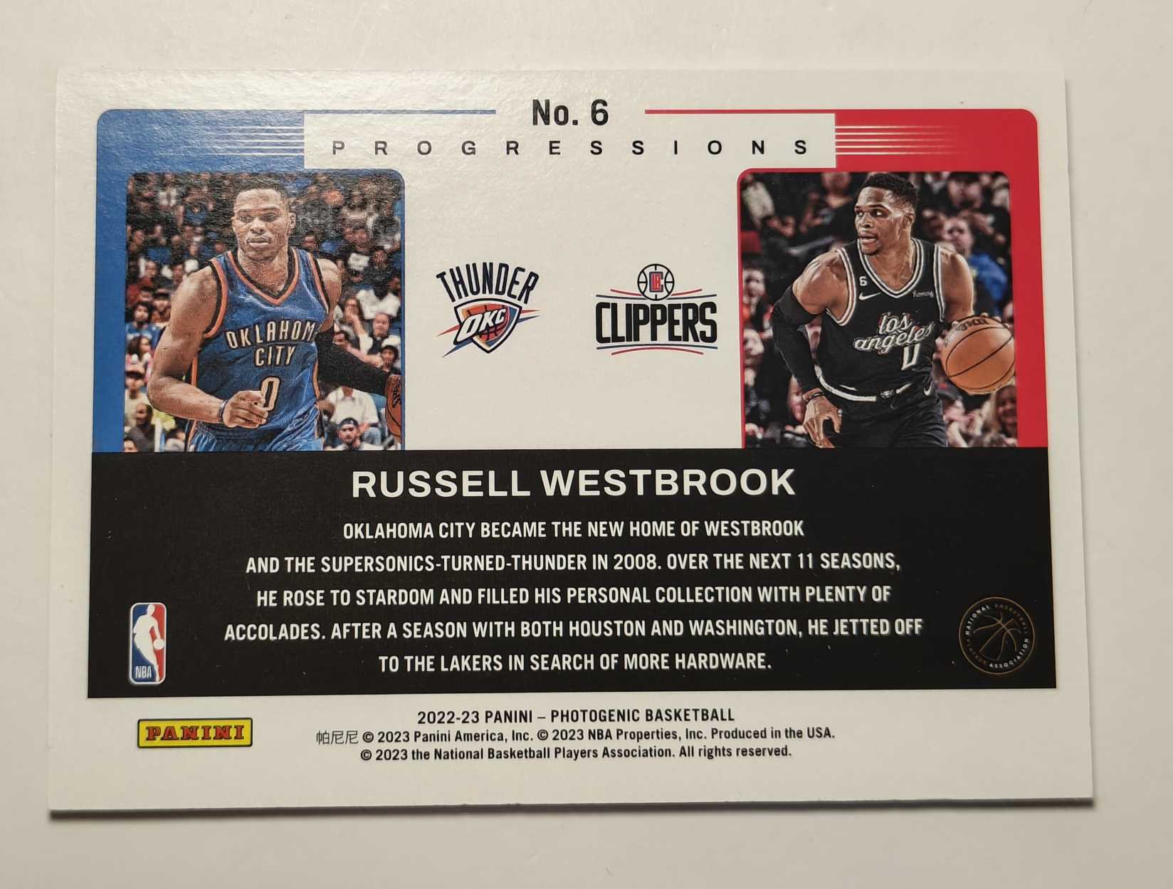 2022-23 Panini PaniniPhotoGenicNBA Russell Westbrook 【hw代卖】上镜系列 拉塞尔 威斯布鲁克 威少 雷霆 快船 前世今生 特卡 收藏必备 品相如图