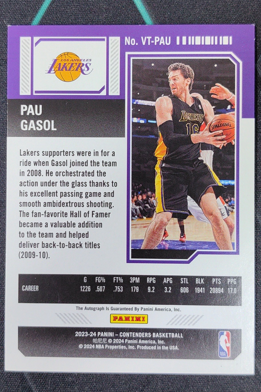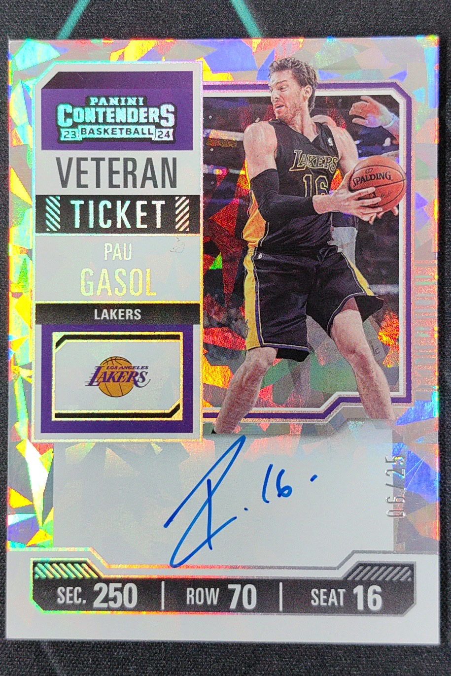 2023-24 Panini Contenders Pau Gasol 保罗 加索尔 大加索尔 6/25编 签字 卡签 背号签 球票 碎冰折 湖人 篮球 瑕疵如图