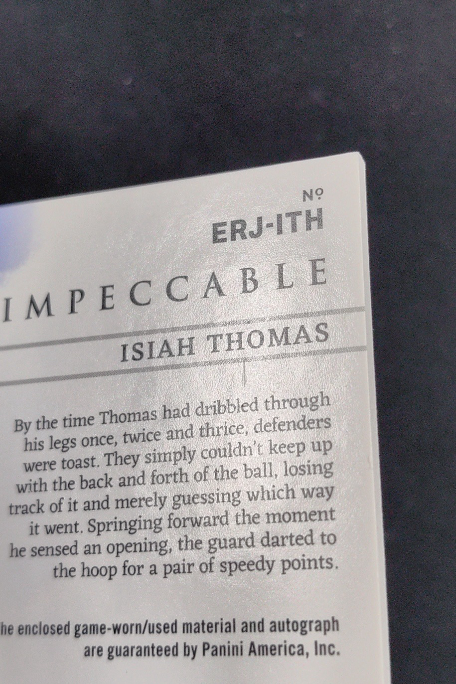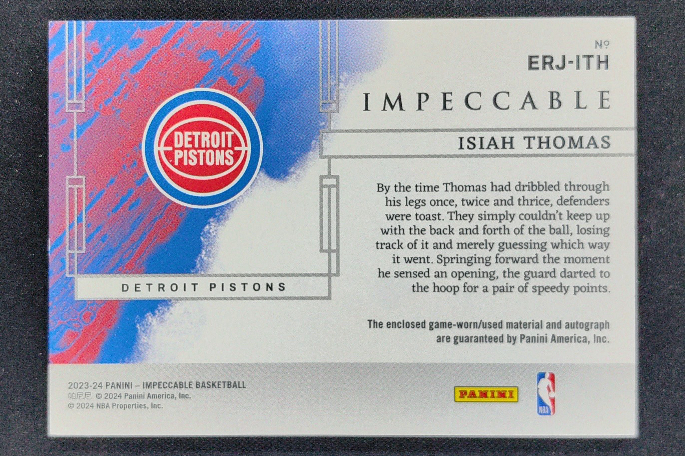 2023-24 Panini Impeccable Isaiah Thomas 以赛亚 托马斯 微笑刺客 2/5编 签字 卡签 球衣 切割 小真金 JA 活塞 篮球 瑕疵如图