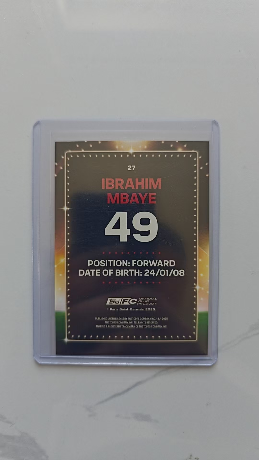 2024-25 Topps Paris Saint-Germain Team Set Ibrahim Mbaye RC 易卜拉欣·姆巴耶 法国 新秀 180/199 霓虹绿折 巴黎人表演特卡 巴黎队盒