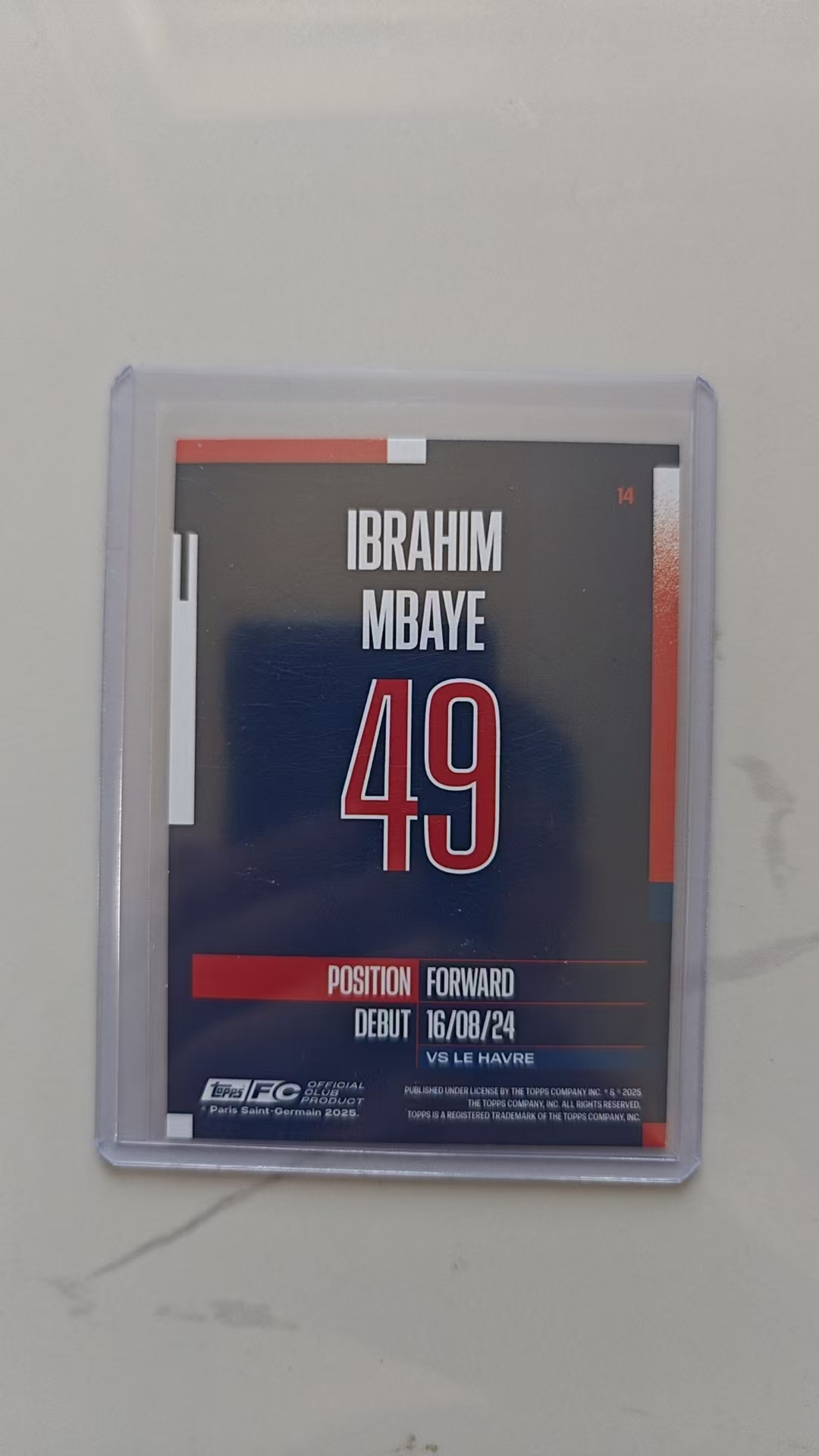 2024-25 Topps Paris Saint-Germain Team Set Ibrahim Mbaye RC 易卜拉欣·姆巴耶 法国 新秀 103/199 霓虹绿折 现役 巴黎队盒 返场