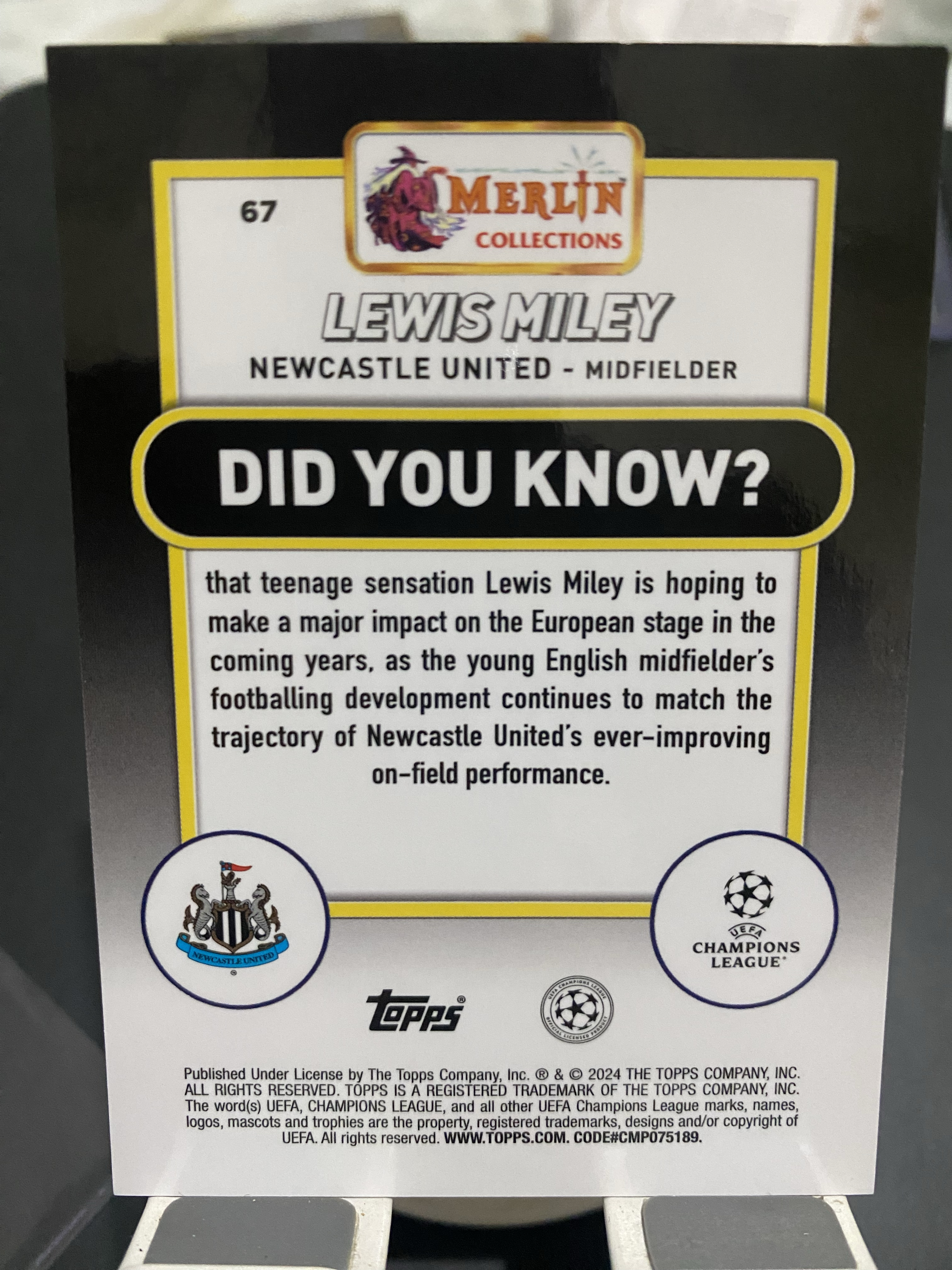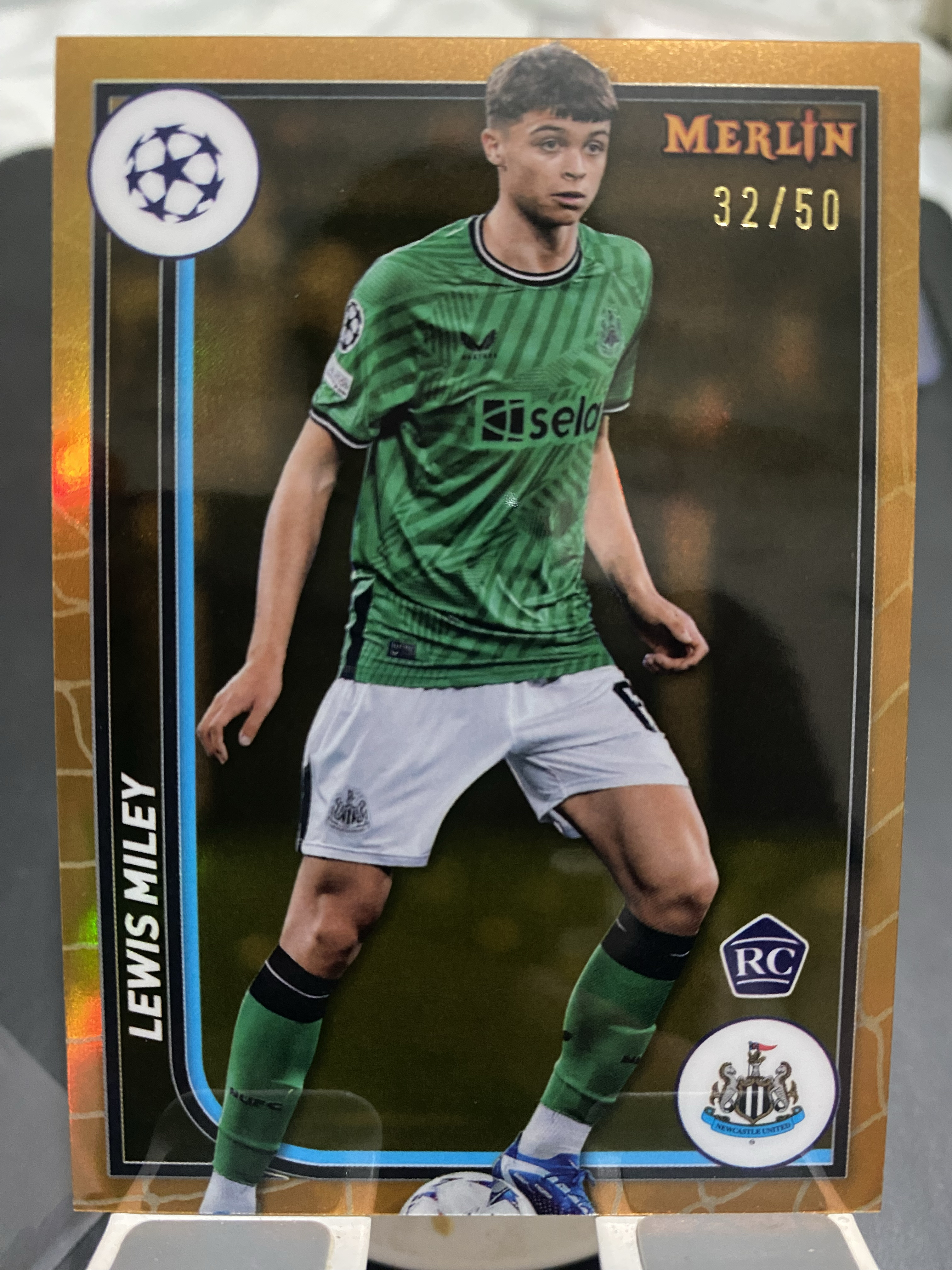2023-24 Topps Merlin chrome Lewis Miley RC 欧冠 梅林 纽卡斯尔联 新秀 刘易斯 米利 50编 金折欧冠 极具收藏价值 未来必涨 卡品如图