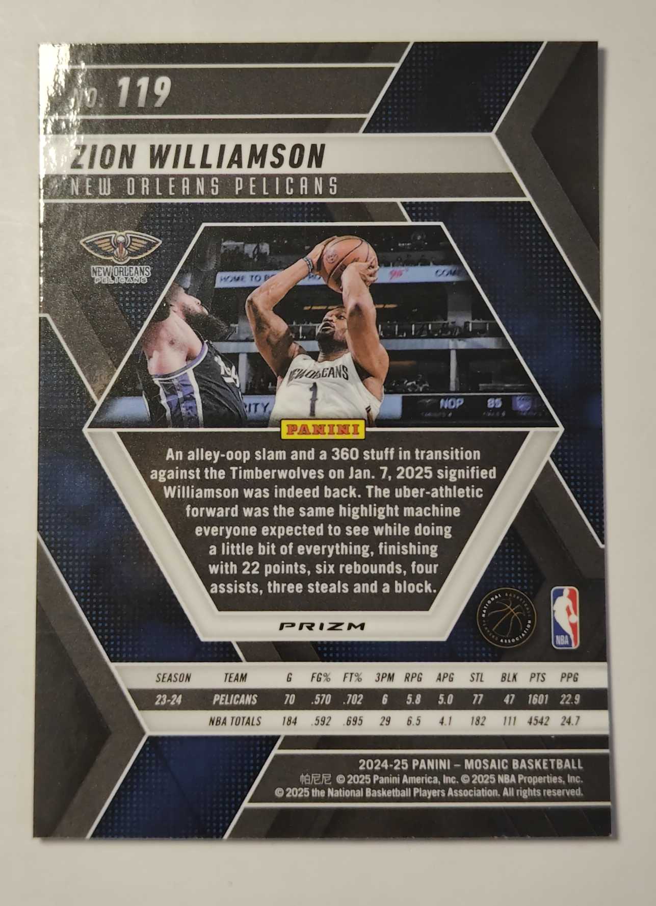 2024-25 Panini Mosaic Zion Williamson 【hw代卖】鹈鹕 胖虎 锡安 马赛克系列 马赛克折 折射 实卡好看 收藏必备 品相如图 乔丹 普洱队友