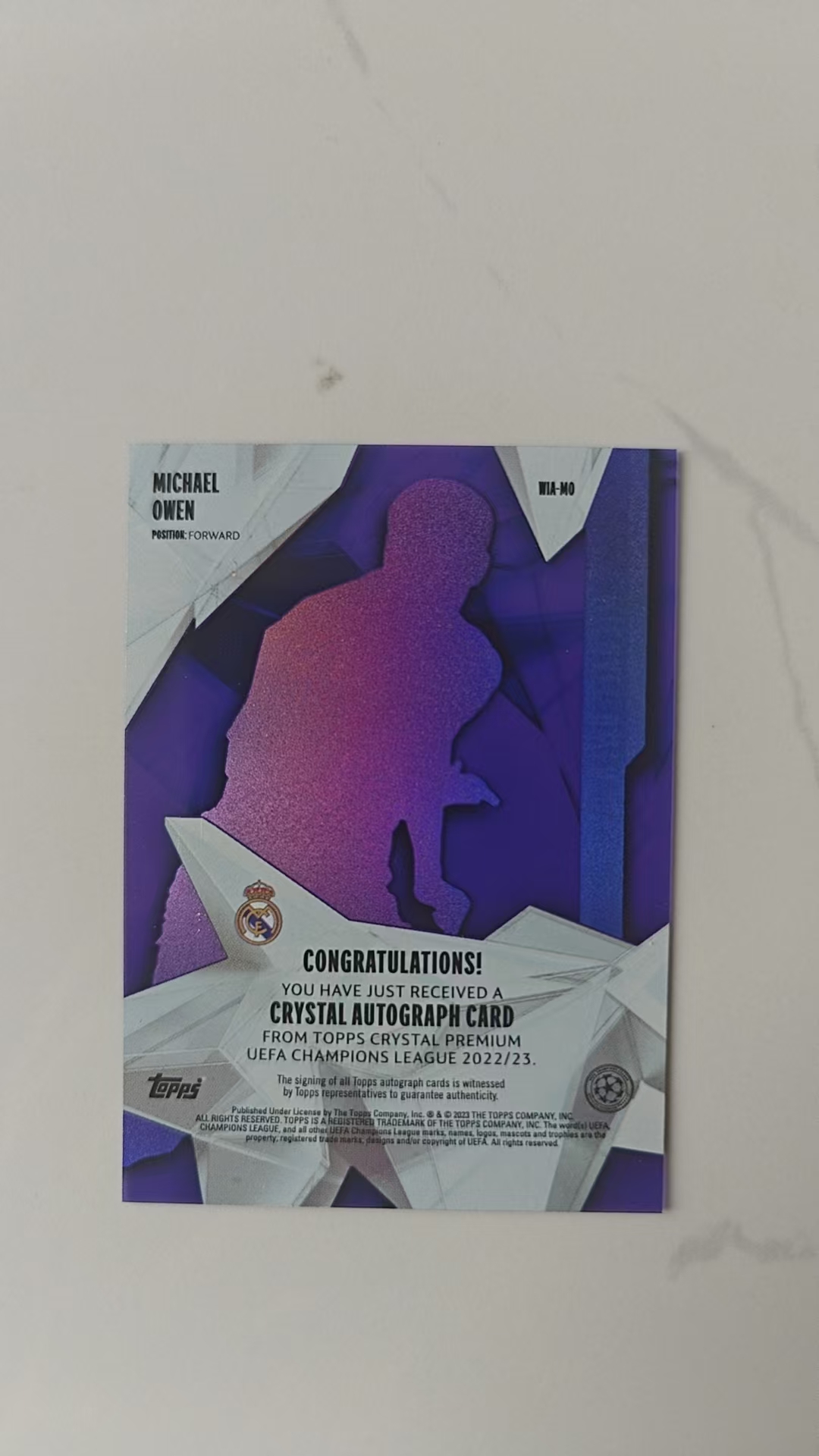 2022-23 Topps Crystal Michael Owen 迈克尔·欧文 皇马 英格兰 金童 带编签字 06/99 紫折 紫碎冰折 墨迹完美 中国限定 水晶 传奇巨星 红军传奇 利物浦