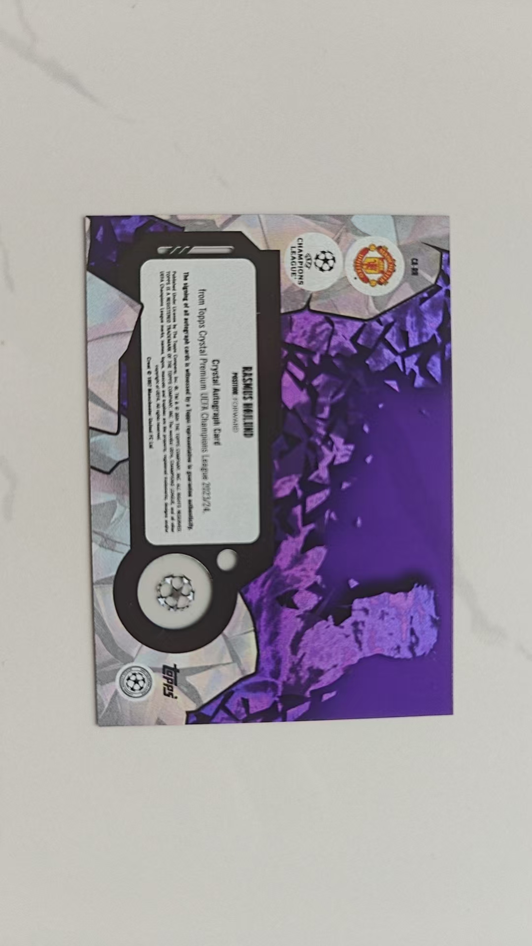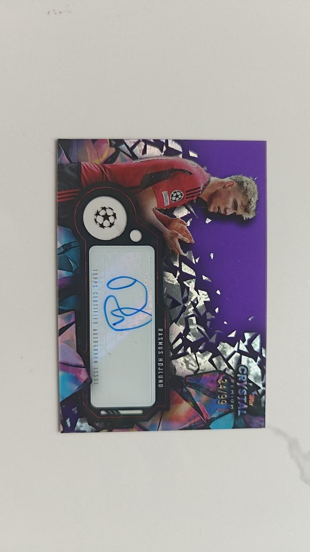 2023-24 Topps Crystal Rasmus Hojlund 拉斯姆斯·霍伊伦德 曼联 丹麦 带编签字 34/99 紫折 紫水晶折 中国限定 水晶 那不勒斯 返场