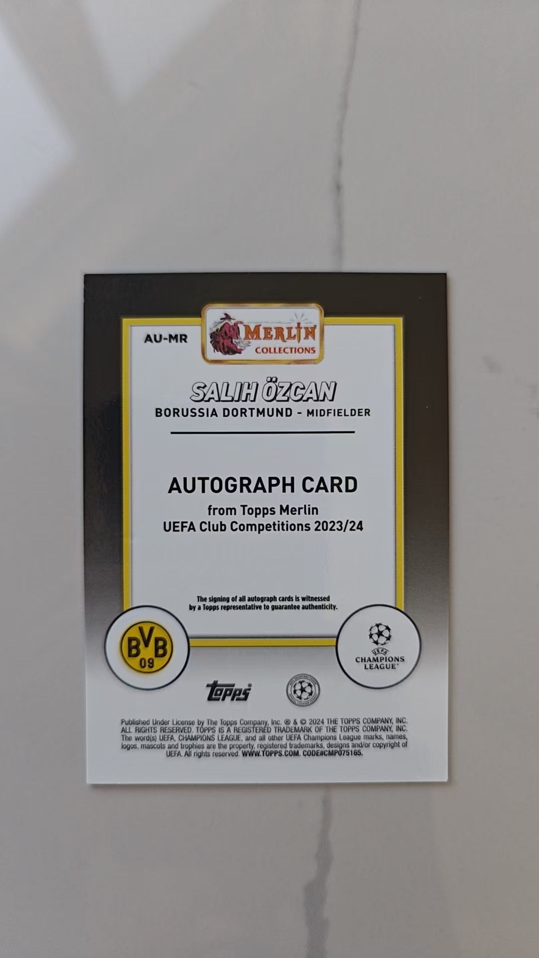 2023-24 Topps Merlin Chrome Salih Ozcan 萨利赫·厄兹詹 多特蒙德 土耳其 签字 墨迹完美 梅林欧战正系列 梅林正系列