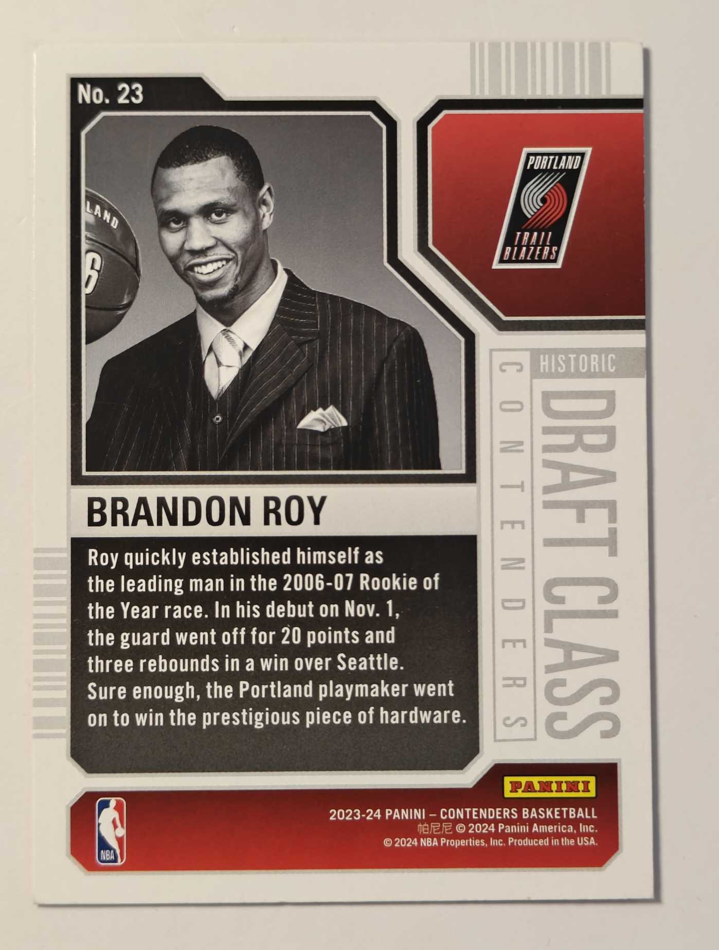 2023-24 Panini Contenders Brandon Roy 【hw代卖】开拓者 布兰登 罗伊 黄曼巴 球票系列 杨瀚森 阿夫迪亚前辈 开拓者一哥 收藏凑套必备 品相如图