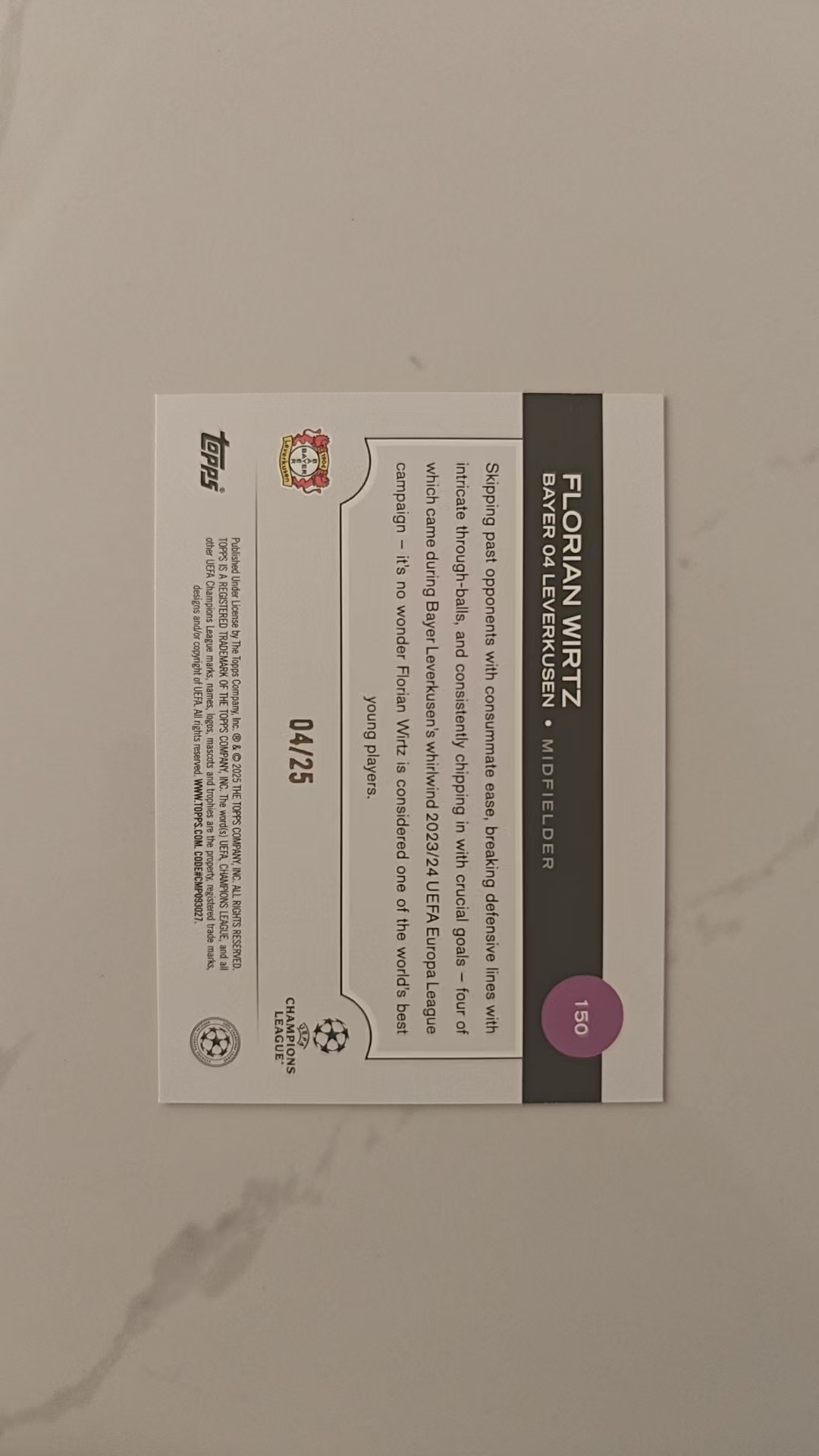 2024-25 Topps UCC Florian Wirtz 弗洛里安·维尔茨 勒沃库森 德国 04/25 橙火焰折 橙折 欧战正系列 利物浦