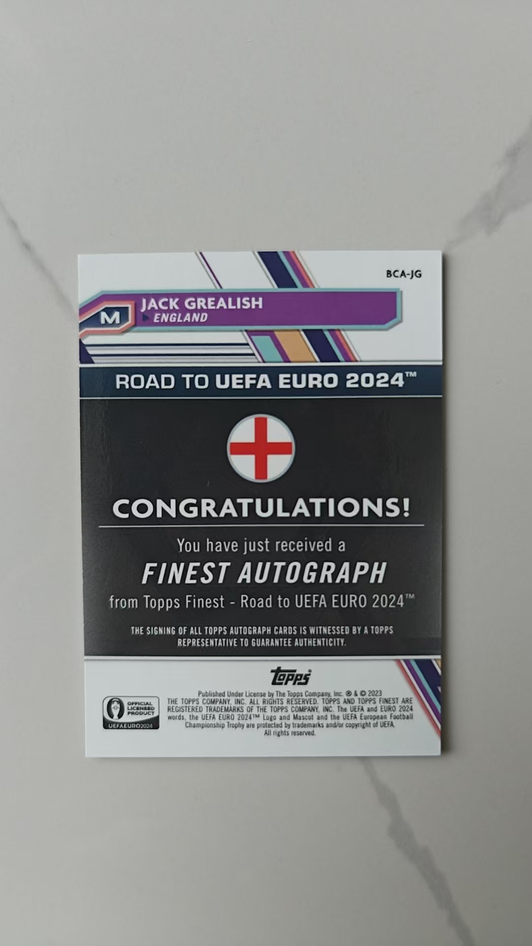 2024 Topps Road To UEFA EURO 2024 Jack Grealish 杰克·格拉利什 曼城 英格兰 摇子 签字 墨迹完美 欧洲杯之路 埃弗顿 英超助攻王