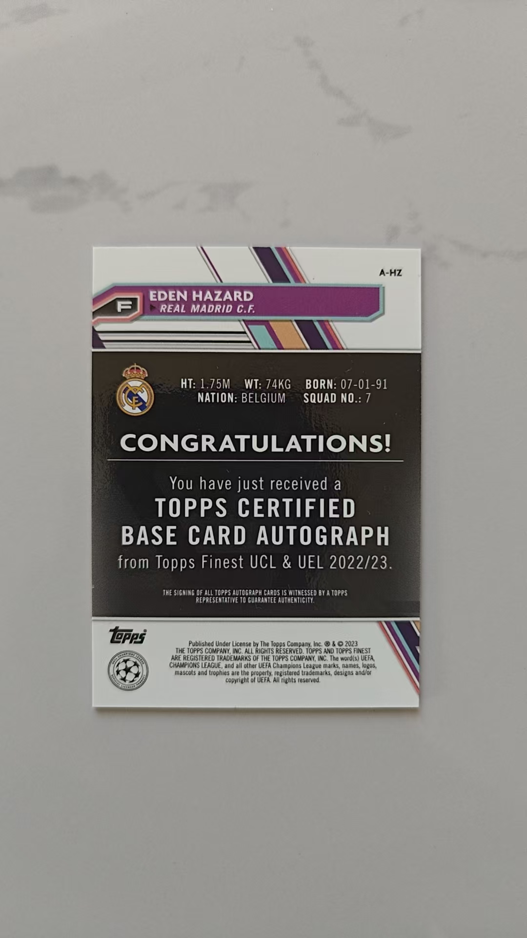 2022-23 Topps Finest Eden Hazard 埃登·阿扎尔 皇马 比利时 汉堡王 扎球王 签字 墨迹完美 欧战正系列 传奇巨星