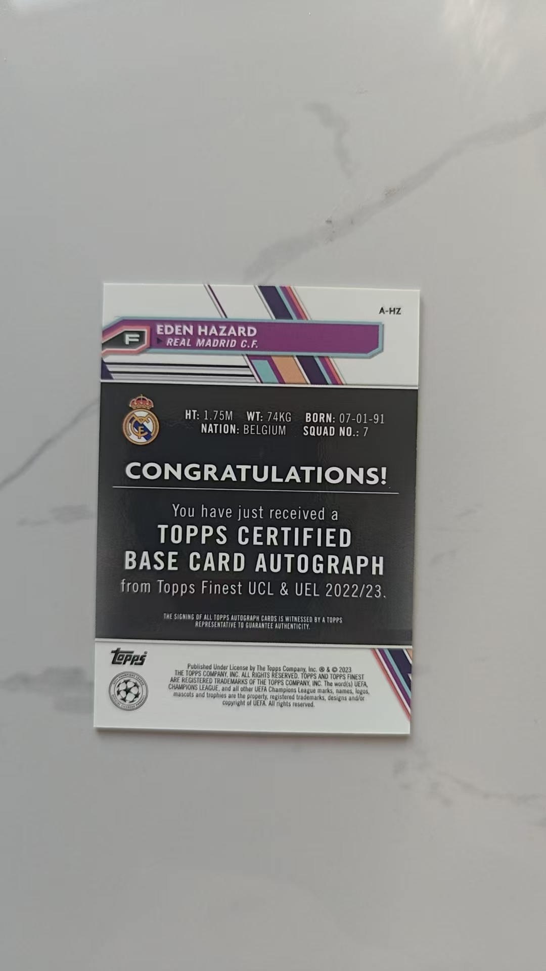 2022-23 Topps Finest Eden Hazard 埃登·阿扎尔 皇马 比利时 汉堡王 扎球王 带编签字 60/99 绿折 墨迹完美 欧战正系列 传奇巨星