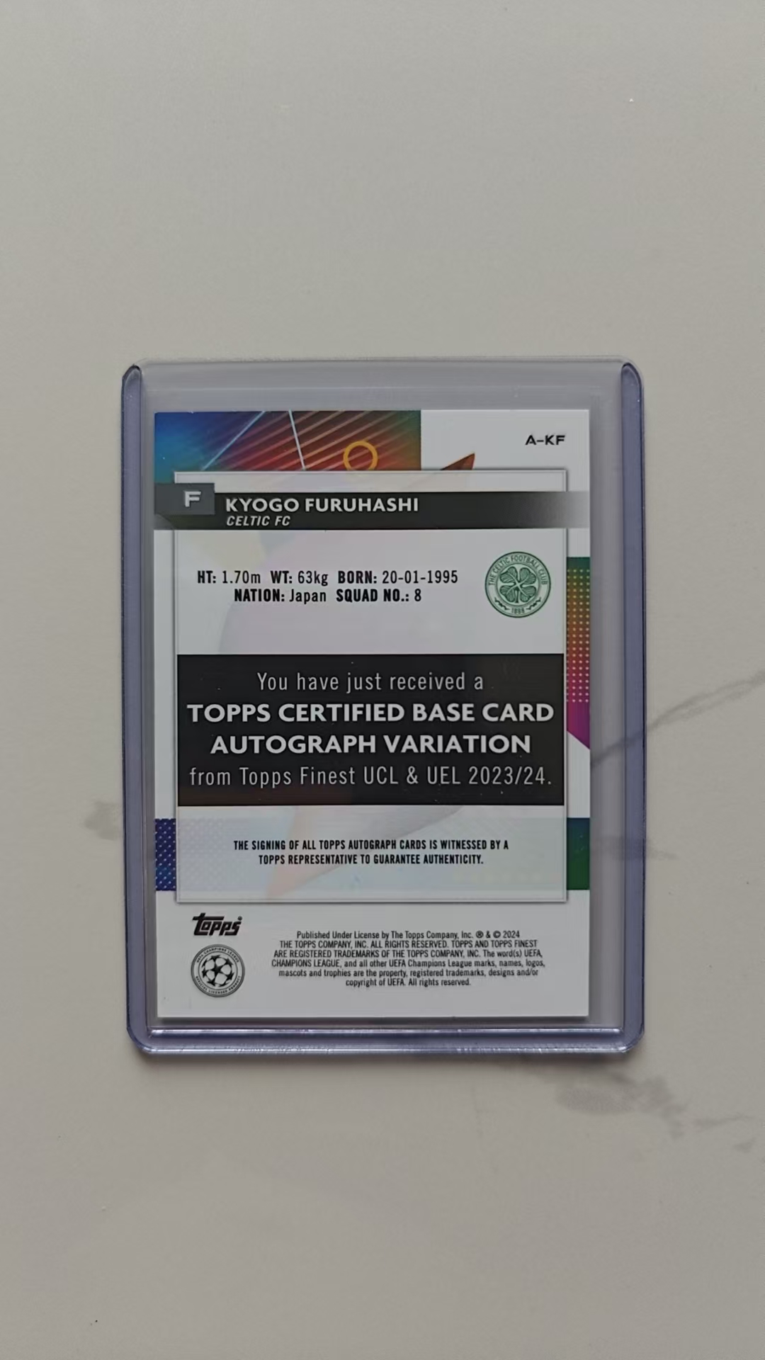 2023-24 Topps Finest Kyogo Furuhashi 古桥亨梧 凯尔特人 日本 签字 墨迹完美 欧战正系列 小日子 第一张