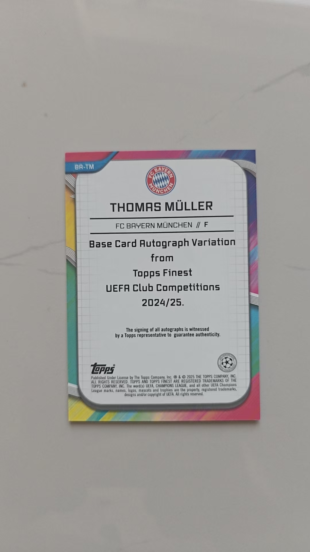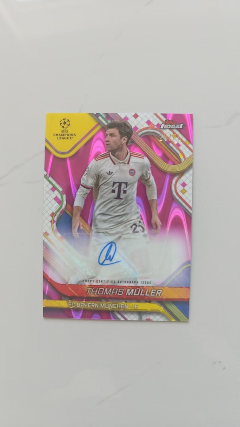 2024-25 Topps Finest Thomas Muller 托马斯·穆勒 拜仁 德国 二娃 带编签字 28/75 洋红熔岩折 洋红折 墨迹完美 欧战正系列 温哥华白浪