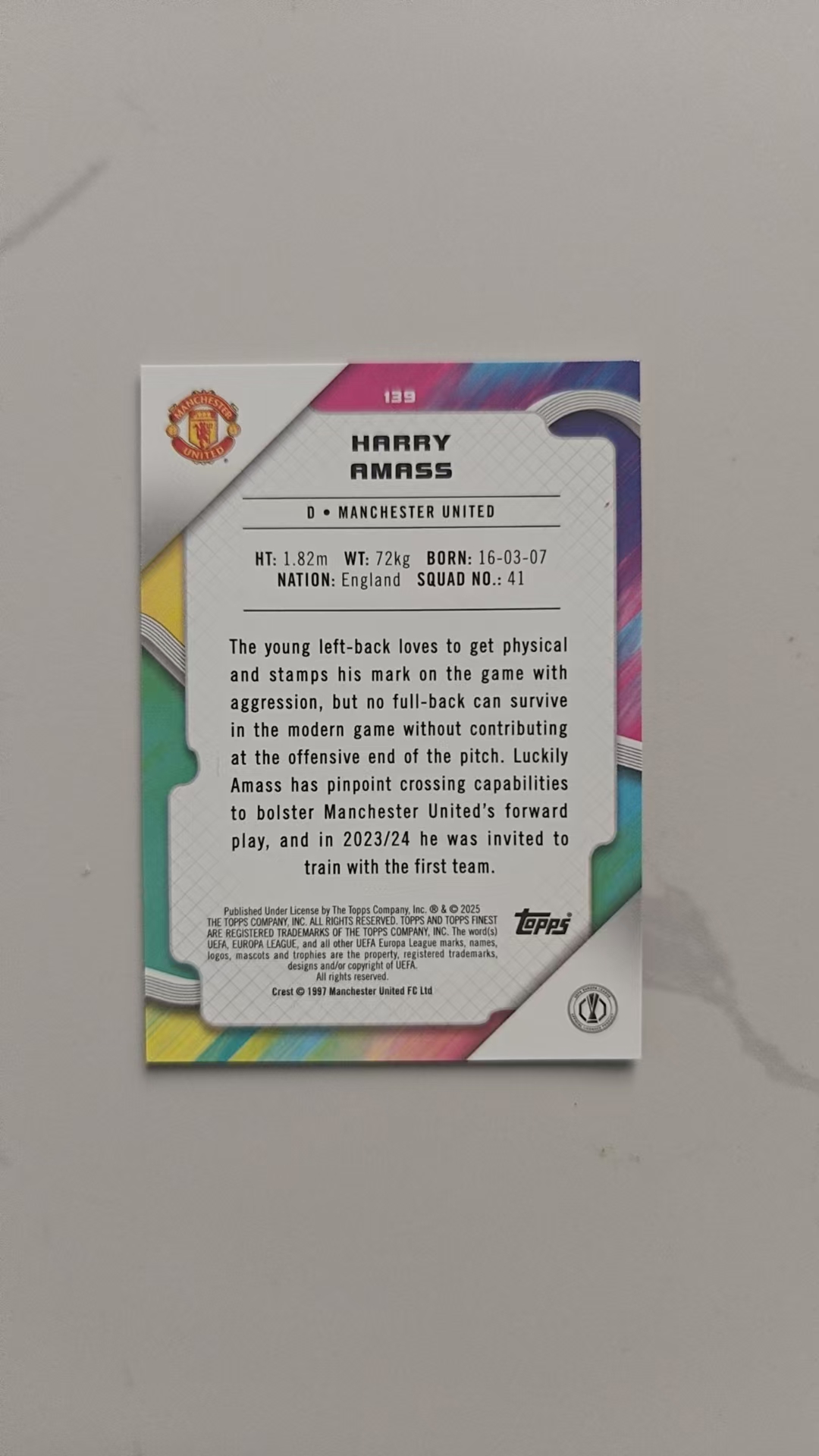 2024-25 Topps Finest Harry Amass RC 哈里·阿马斯 曼联 英格兰 新秀 011/199 紫熔岩折 紫折 欧战正系列 谢周三