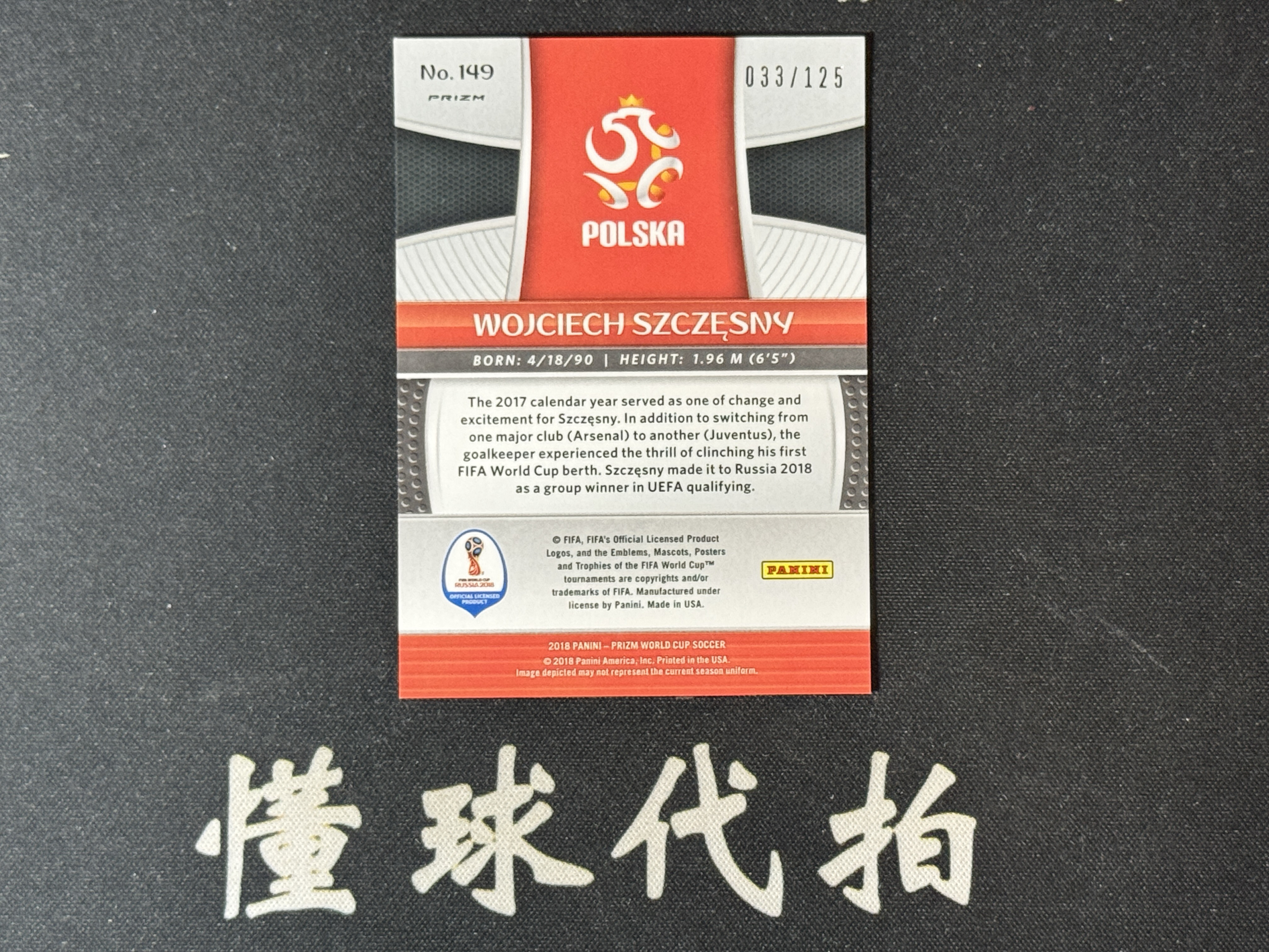 【懂球代拍】2018 panini 世界杯prizm 限量 125编 WOJCIECH SZCZESNY什琴斯尼 波兰🇵🇱 尤文 巴萨 蓝镭射折射 值得收藏 DQ075G 012