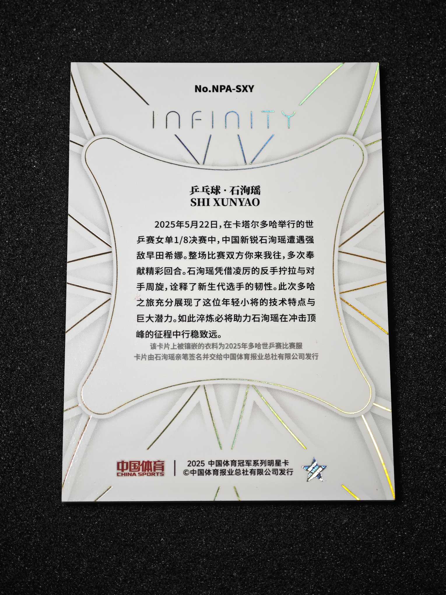 2025 奇卡 中国体育 无限系列 乒乓球 石洵瑶 rc 新秀patch球衣签字 卡签 rpa 10编 金折 带夹 峰哥