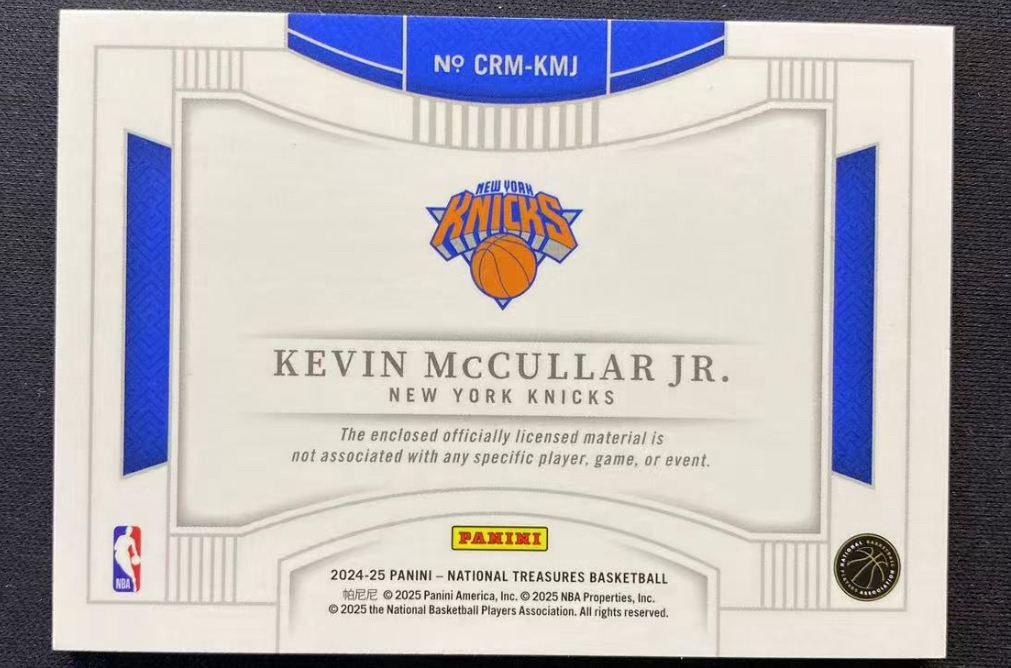 2024-25 Panini National Treasures Kevin McCullar Jr. RC 国宝 小凯文 麦卡勒 尼克斯 新秀 大窗 球衣 物料 /99编 卡品如图 收藏必备