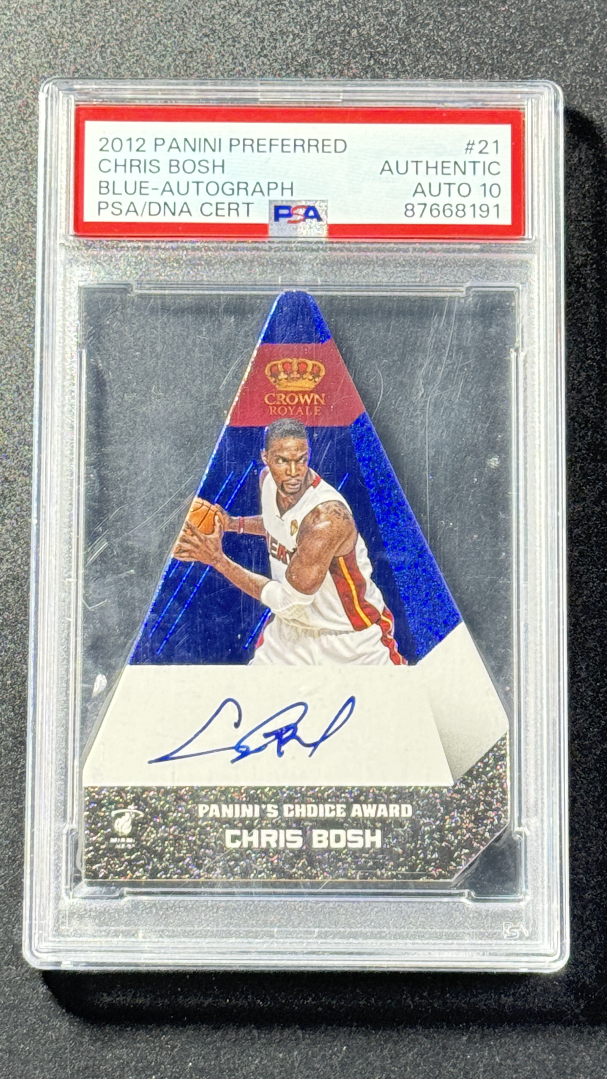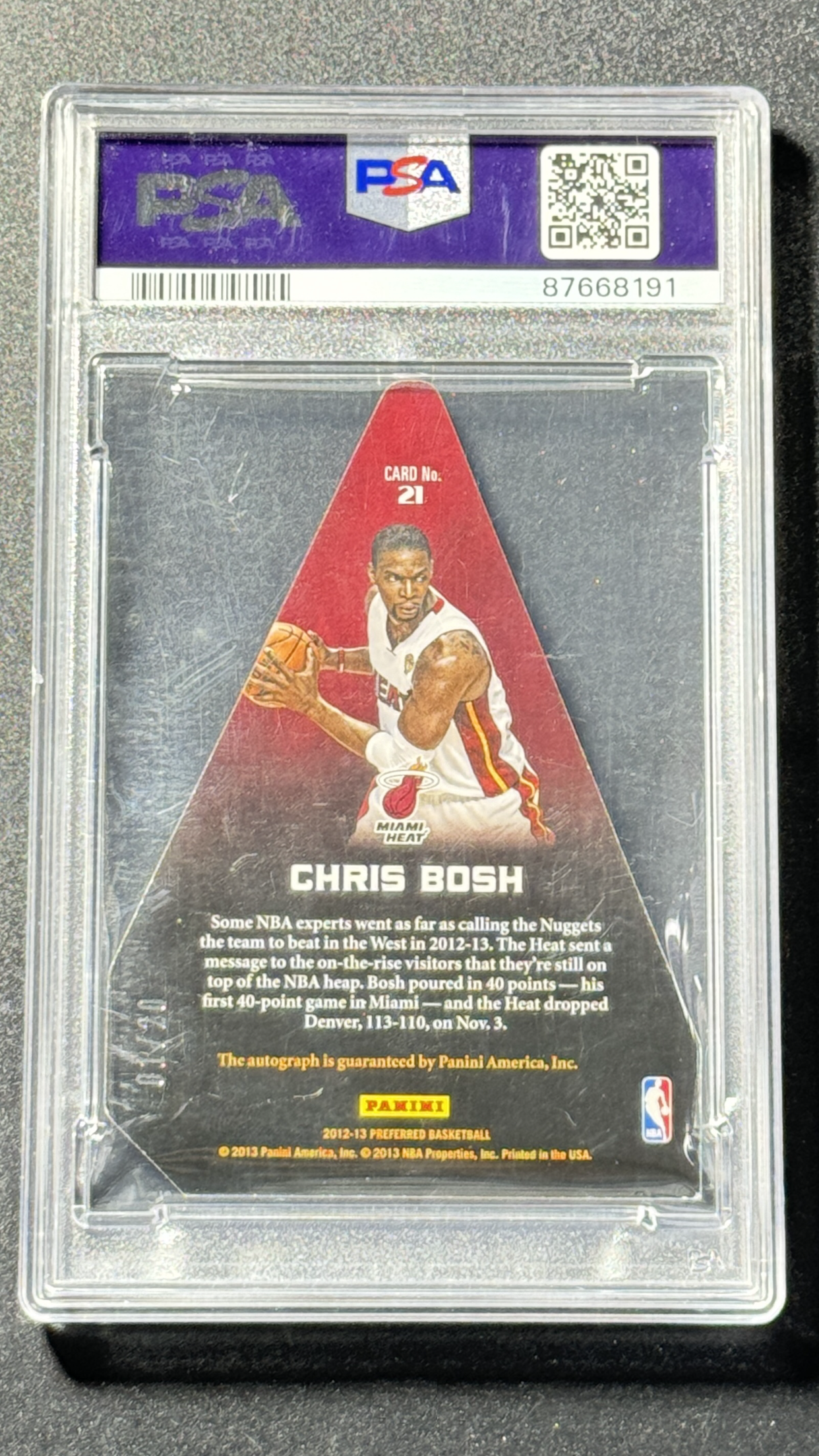 2012-13 Panini Preferred Chris Bosh #21 克里斯波什 龙王 热火 小书 皇冠 异形 金字塔 蓝折 签字 卡签 01/20编 同背 PSA签字10 评级砖微疵看图3