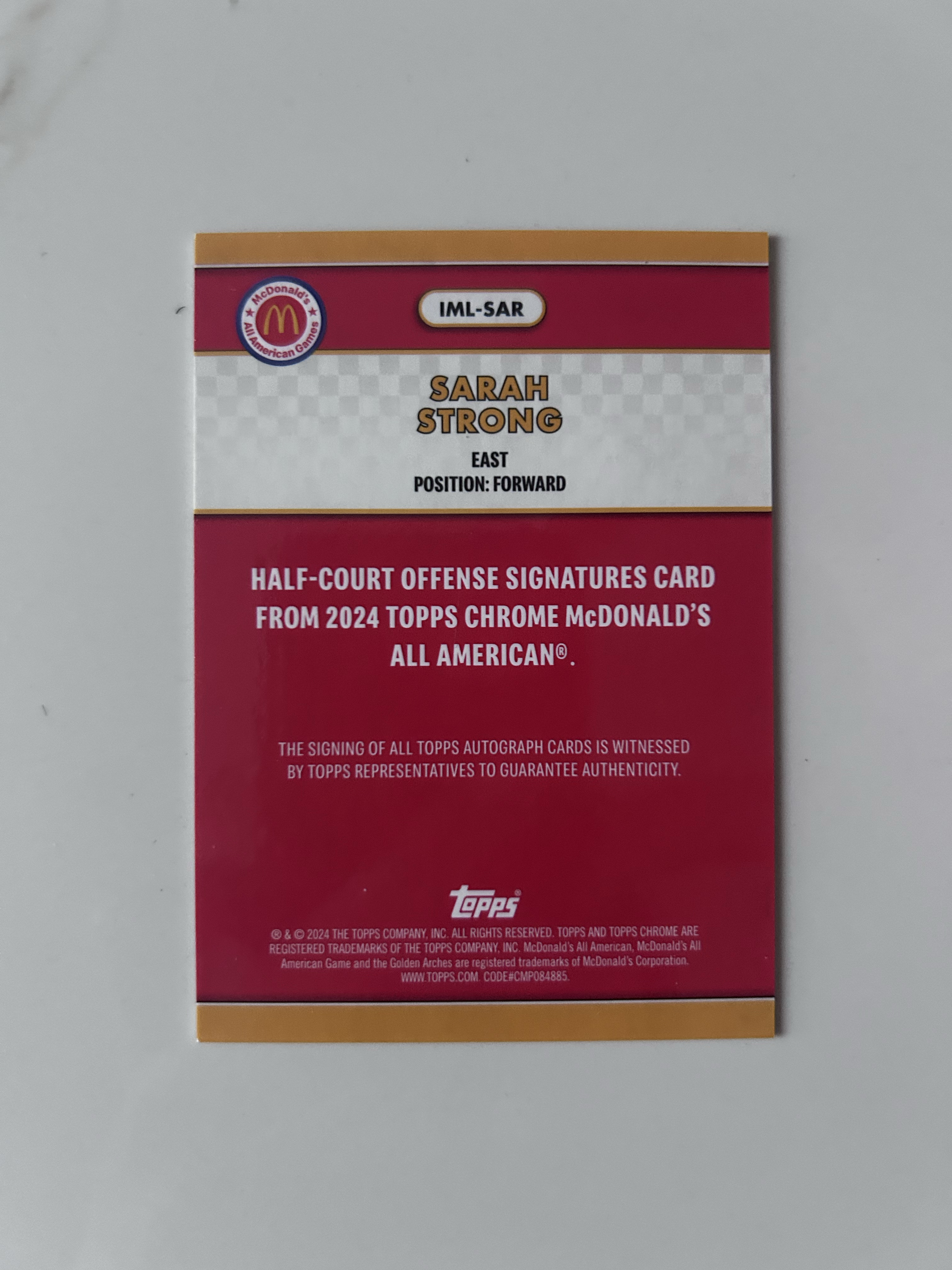 2024 Topps McDonald's All American Sarah Strong RC 麦当劳全美 女高第一 康大新星 莎拉·斯特朗 50编 金折签字 墨迹佳 实卡精美 卡品如图