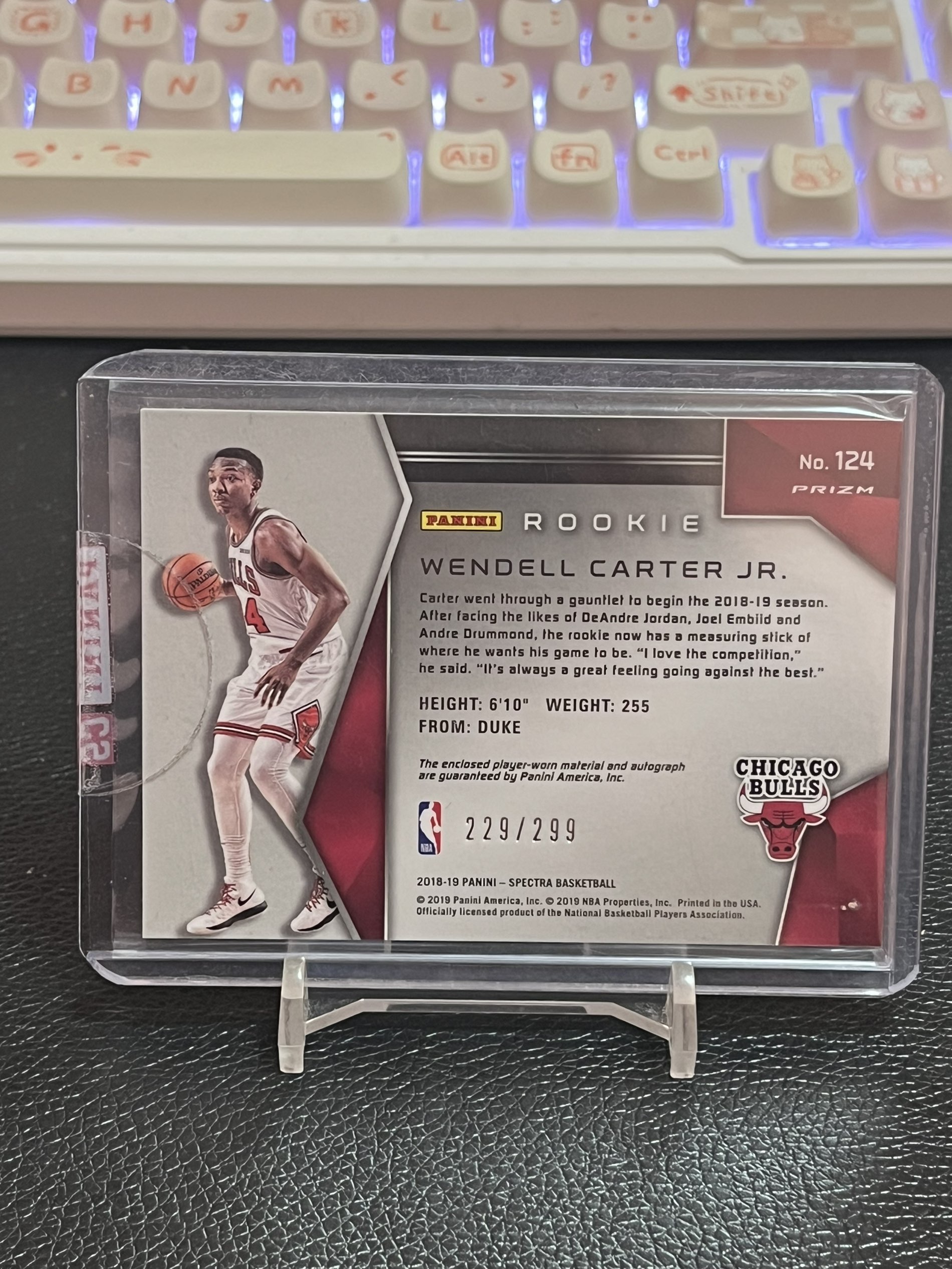 【浩行拍卖 截标预付82%】2018-19 panini spectra wendell carter jr 光谱 公牛 小温德尔 卡特 新秀 rc 折射 签字 卡签 球衣 物料 rja 229/299编 专收必备「苒薇」1103F01祺