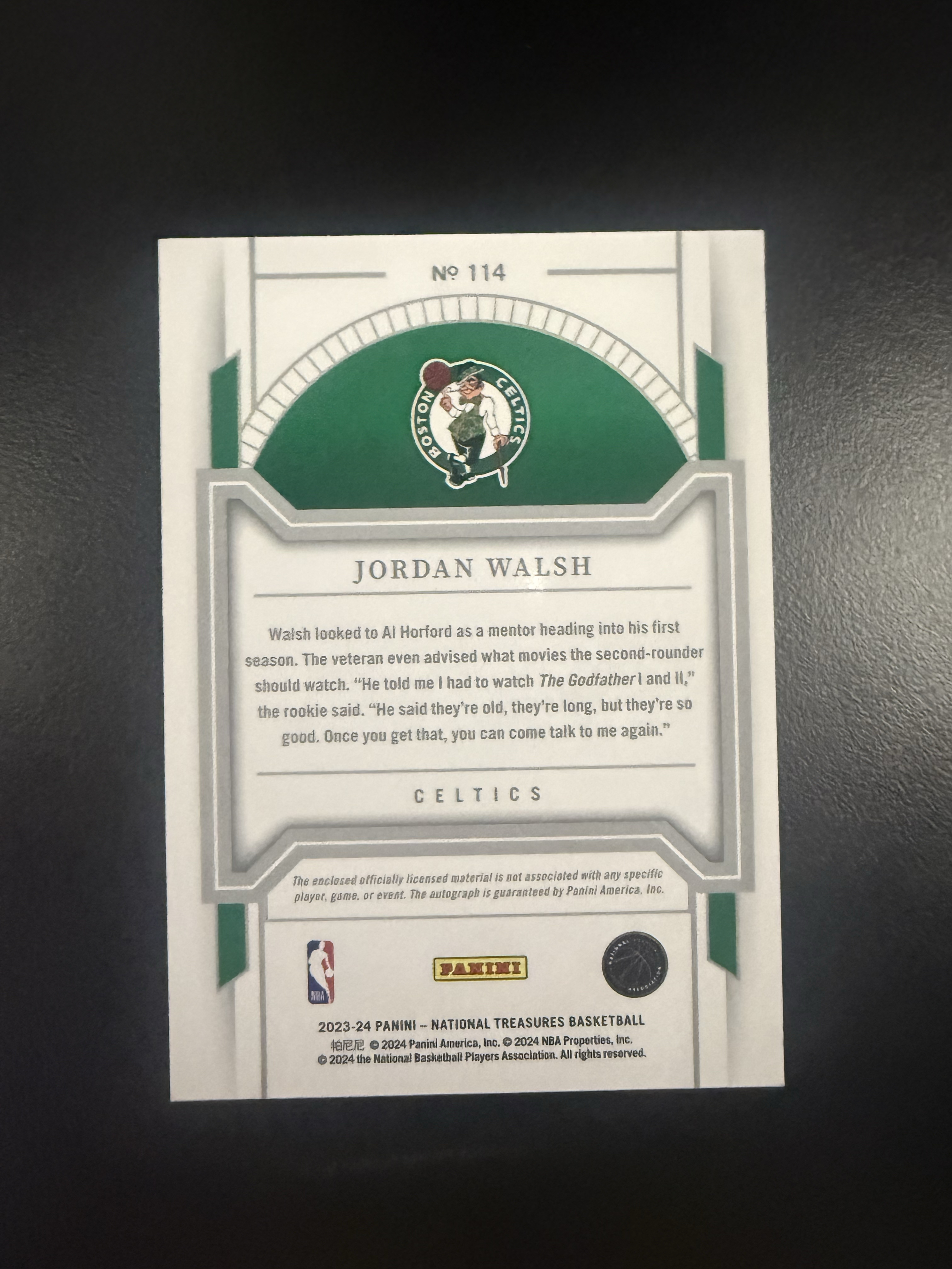 2023-24 Panini National Treasures Jordan Walsh RC 【巴夫金代拍】乔丹沃尔什 国宝 RC新秀 99编 正RPA 签字 卡签 球衣 凯尔特人 卡品如图