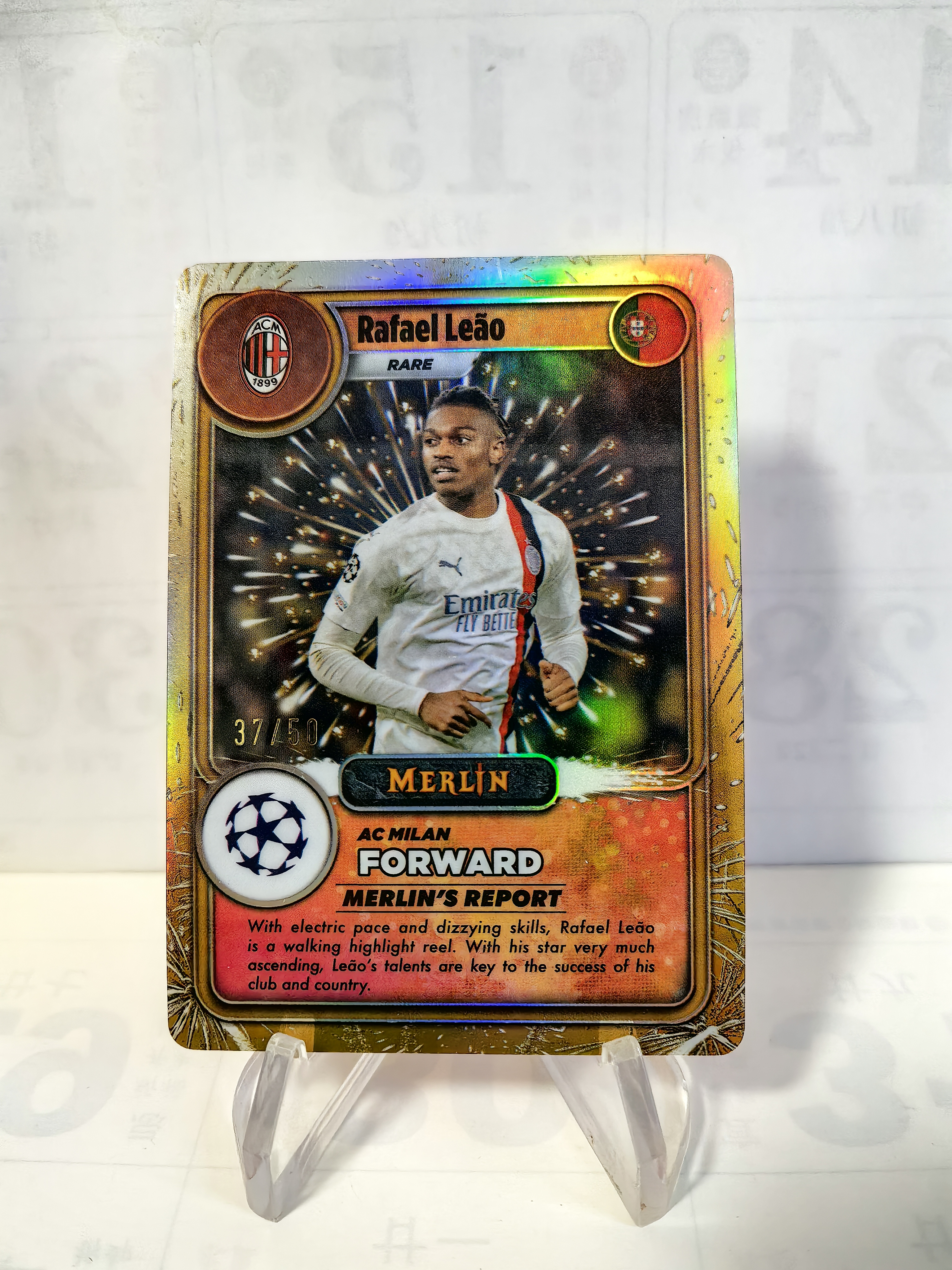 2024 Topps Merlin chrome Rafael Leao 欧冠 梅林 50编 金折 宝可梦特卡 意甲 AC米兰 葡萄牙🇵🇹 拉斐尔莱奥 微瑕如图
