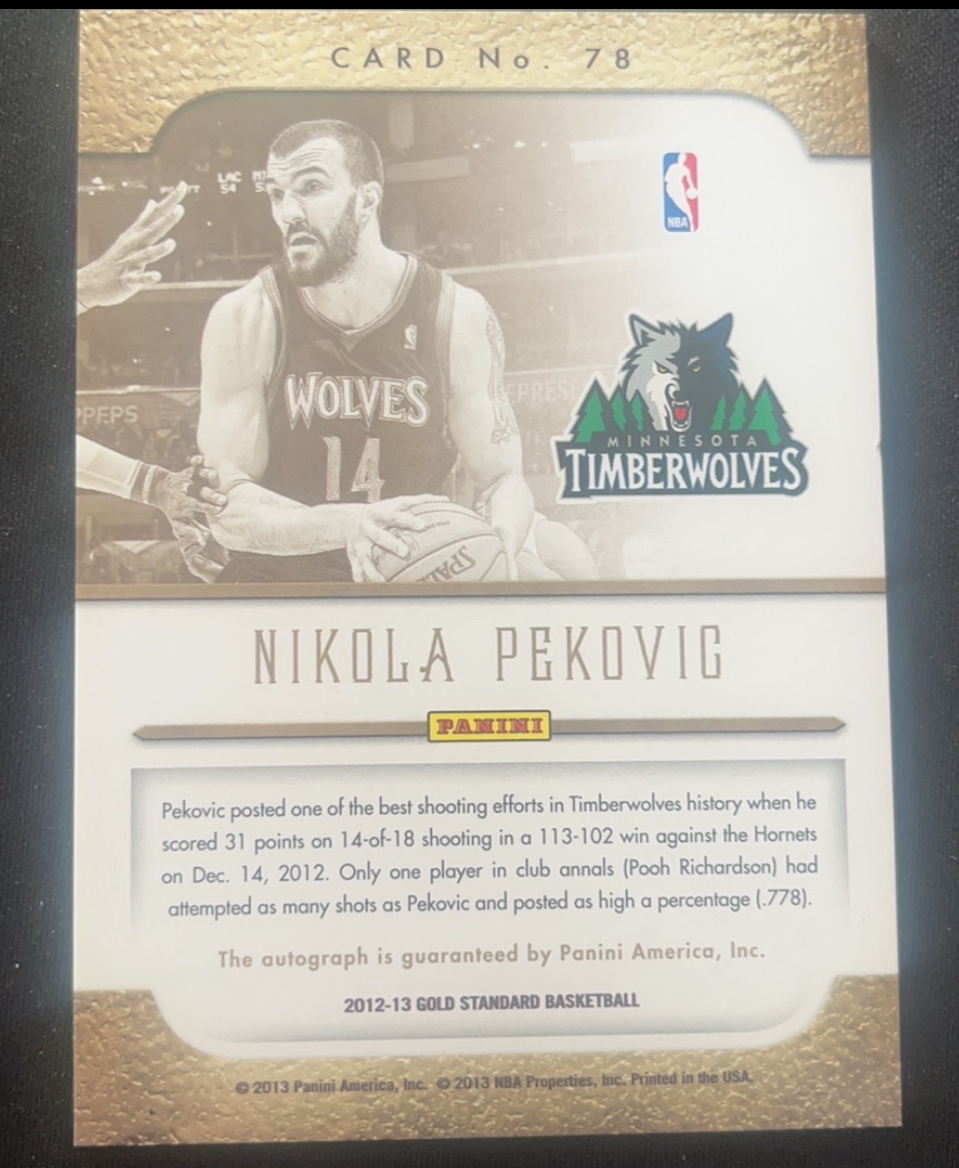 2012-13 Panini Gold Standard Nikola Pekovic RC 尼科拉 佩科维奇 森林狼 名宿 金砖 黑山黑老大 /149编 签字 大白熊 稀有 微瑕如图 收藏必备
