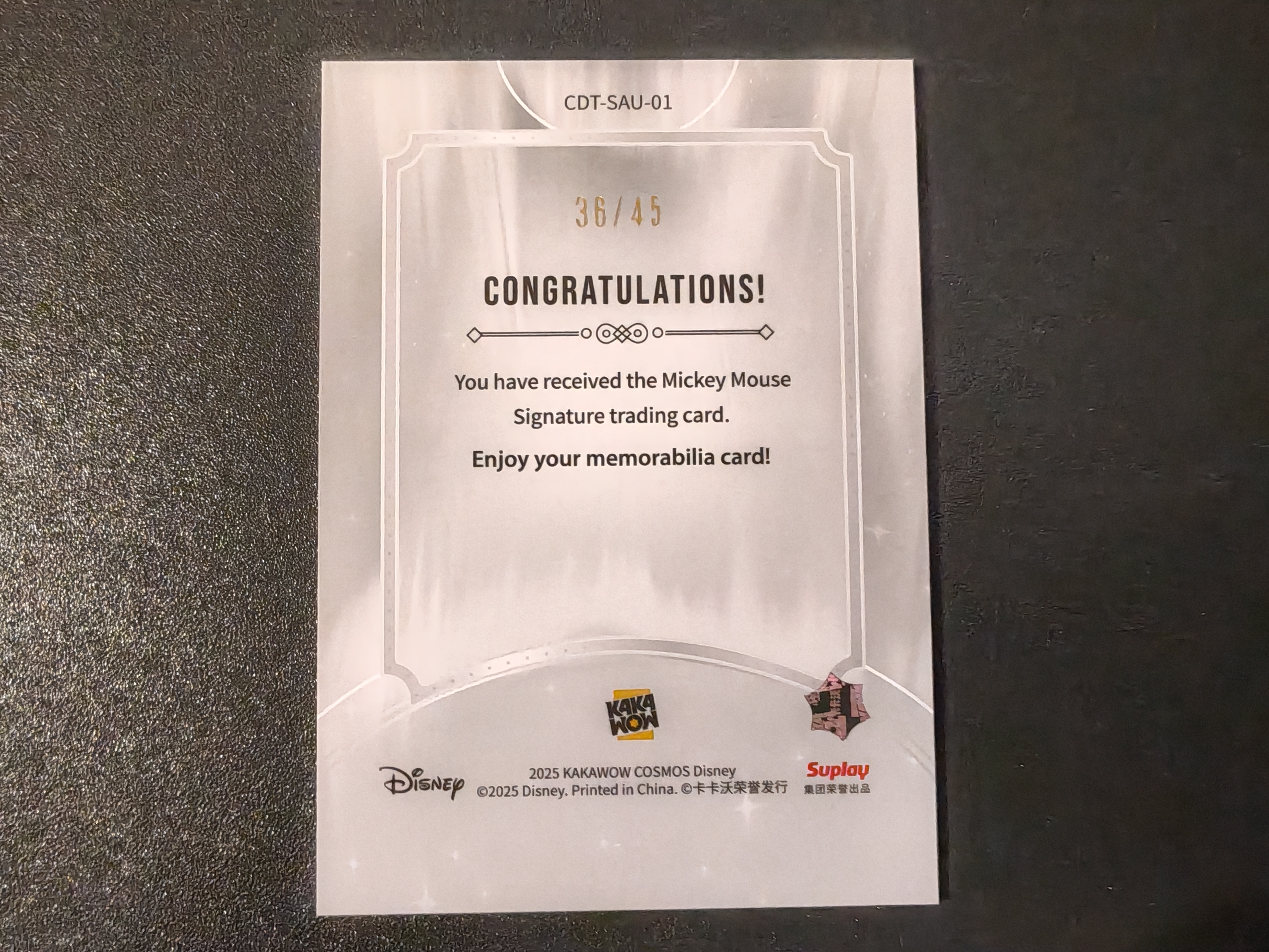 2025卡卡沃迪士尼COSMOS系列收藏卡 极光折 印签 米奇 单签 限/45编 卡品如图所示 默认官瑕 宝