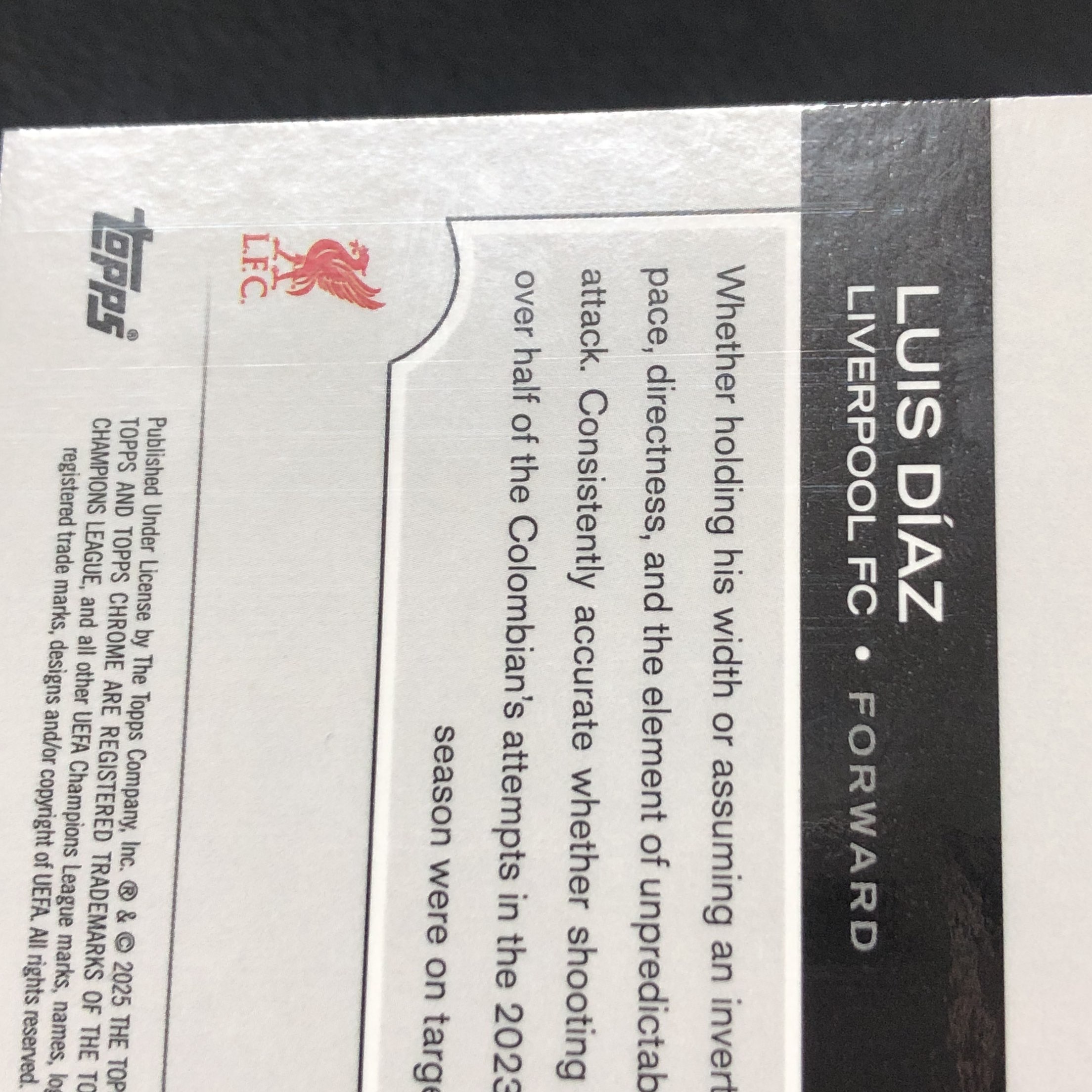 【浩行拍卖 截标预付82%】2025 topps Chrome Luis Diaz 欧冠 利物浦 路易斯 迪亚斯 粉龙鳞折 折射 21/175编 专收必备 瑕疵看图「褚滢」1103J02驡