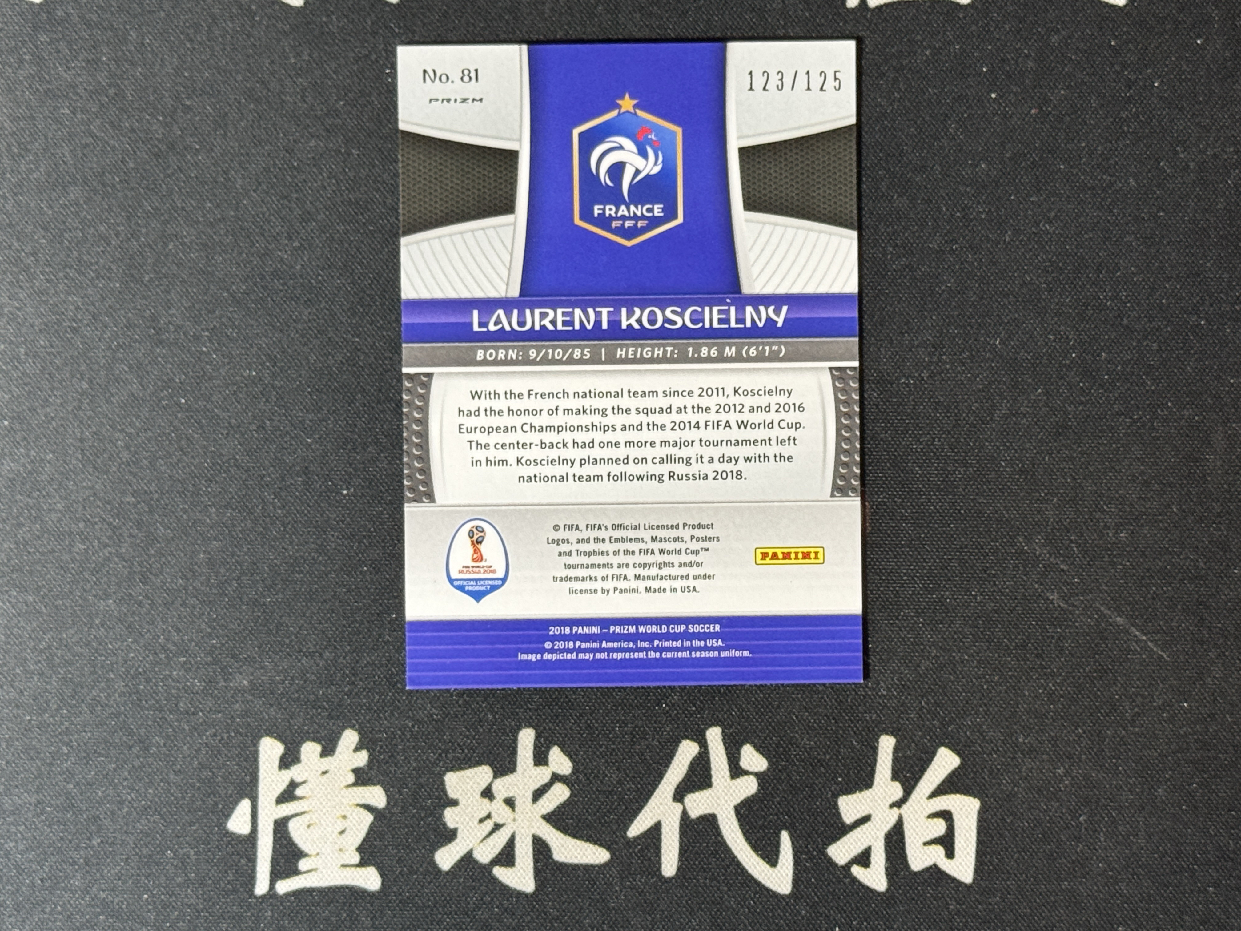 【懂球代拍】2018 panini 世界杯prizm 限量 125编 LAURENT KOSCIELNY科斯切尔尼 法国🇫🇷 阿森纳 蓝镭射折射 值得收藏 DQ075G 039